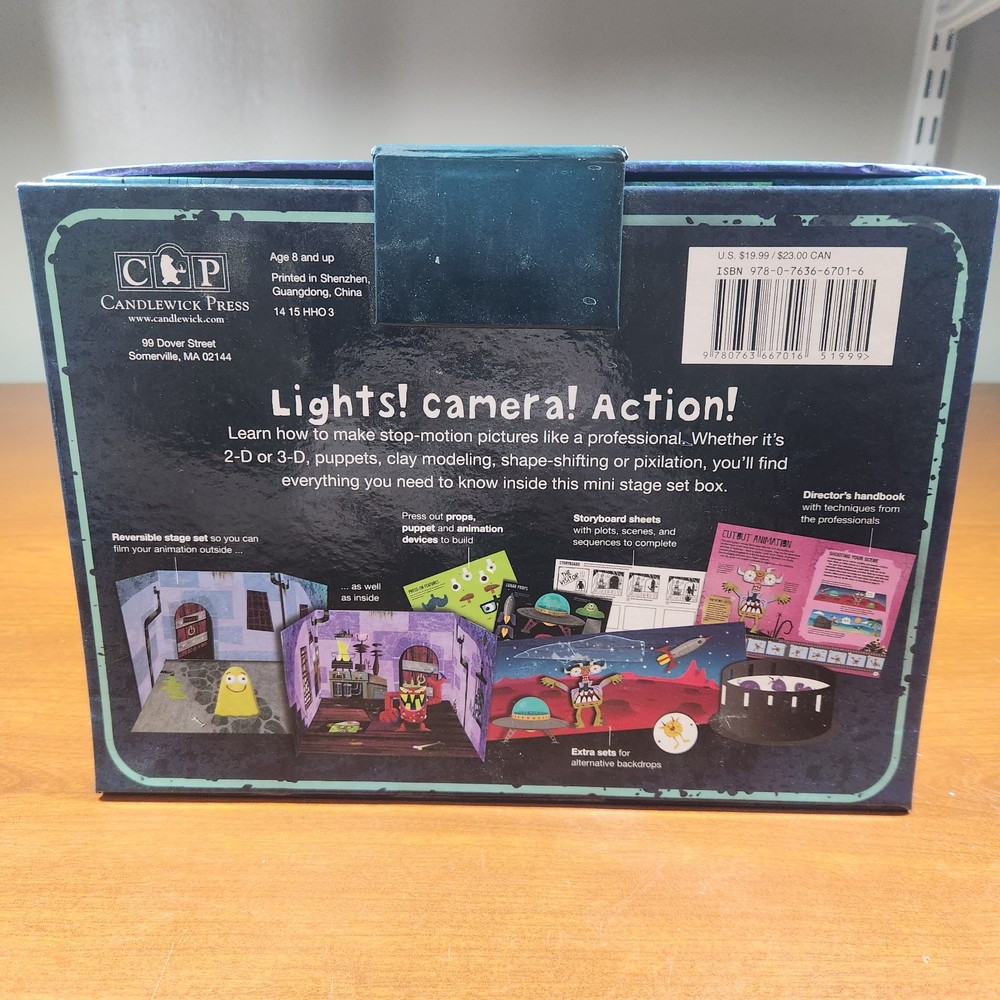 The Candlewick Press Animation Studio is a complete kit for both experienced and new users interested in art and creativity. With a Animation theme, this kit offers step-by-step guidance for creating your own animations and stories. Suitable for ages 8 and up, this educational and fun product allows you to invent your own characters and bring them to life through storytelling. This item has never been played with and the popouts have not been poped, the exterior does have some minor damage but it is completely functional.