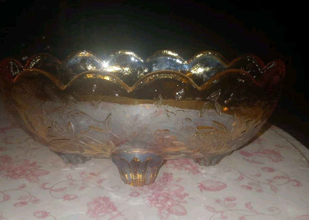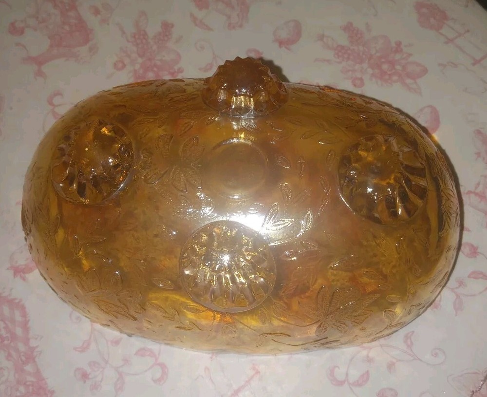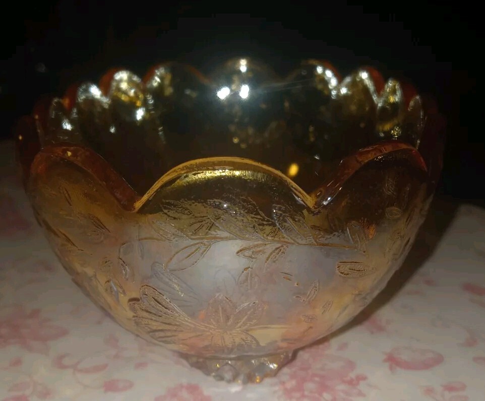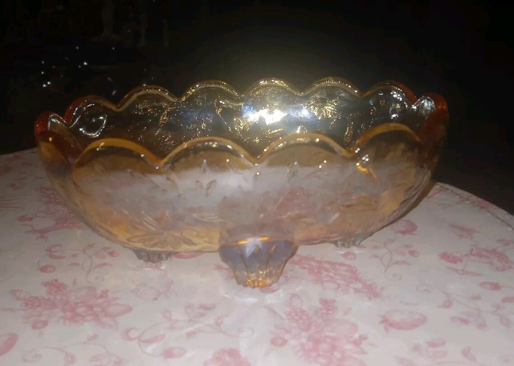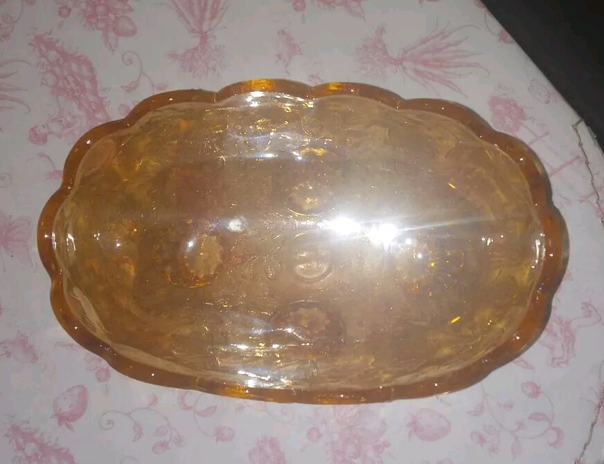 Carnival Glass Bowl Pale Orange Iridescent Footed Oval Bowl no chips or cracks beautiful bowl measurements seen in photos