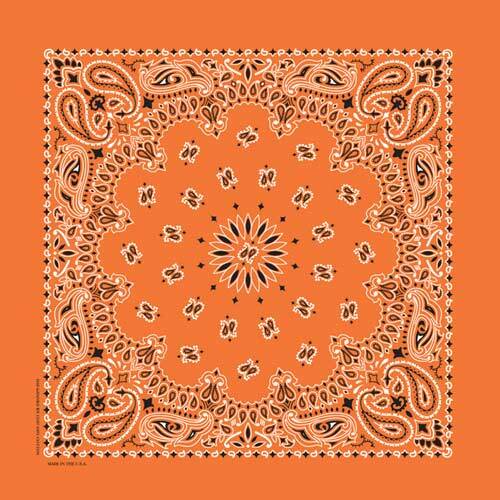 Absolutely love this bandanna—vibrant orange paisley print looks stunning on both sides! The rolled edges add a polished touch, and the soft 100% cotton feels great. Perfect for all-day wear, whether for fashion or function. Proudly made in the USA, it's a must-have accessory. Stays secure and looks fantastic every time!