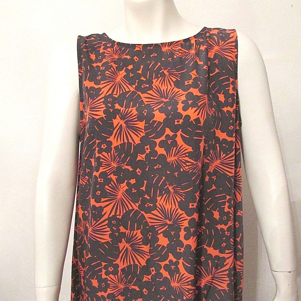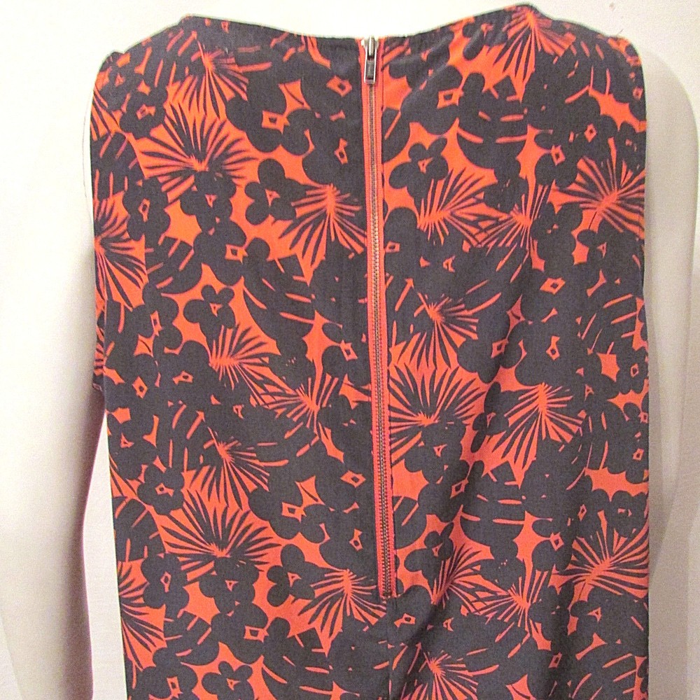 This dress is a dream for summer! The lightweight fabric feels amazing, and the vibrant orange floral print is so eye-catching. The sheath silhouette is flattering, and the exposed back zipper adds a stylish touch. It fits true to size, and the sleeveless design keeps it breezy. The condition is flawless—like brand new. Perfect for a day out or a casual event. Love it!