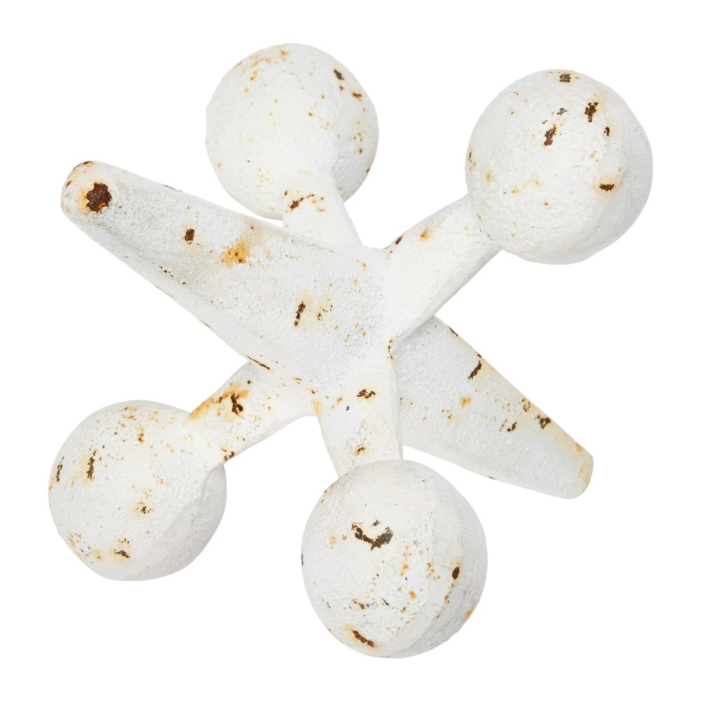 Decorative jack shelf décor adds a playful touch to any book shelf or coffee table; With iron construction and distressed finish, it is the ideal accent piece This playful cast iron jack accent showcases robust cast iron with a distressed cream finish Cast iron jack shelf décor with distressed cream finish Add a whimsical touch to a book shelf or coffee table with this rustic decorative accent Use as a decorative shelf décor accent or book end Jack measures 5.75" H x 5.75" L x 5.75" W
