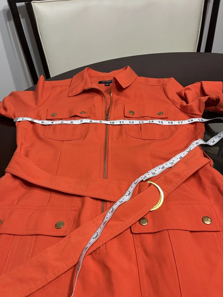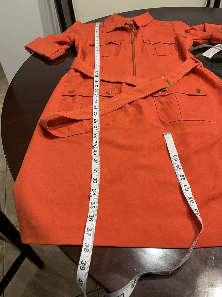 Sharagano orange casual dress, shirt style with front pockets, waist band, slightly stretch and new with tags...