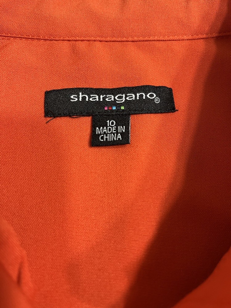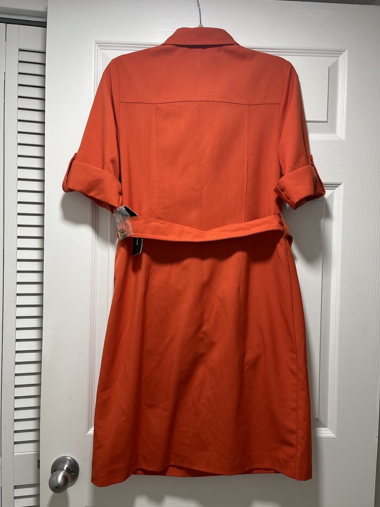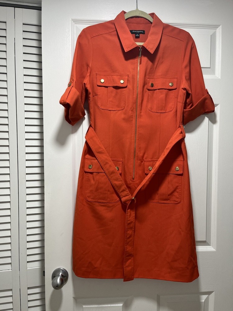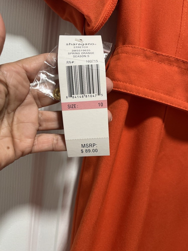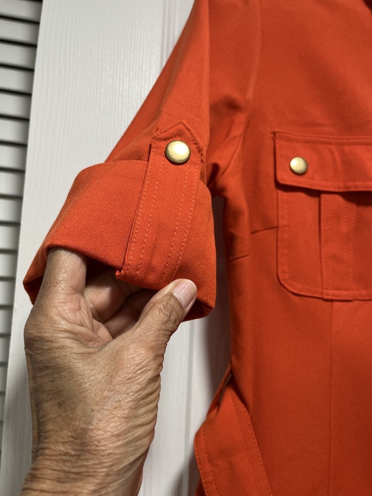 Sharagano orange casual dress, shirt style with front pockets, waist band, slightly stretch and new with tags