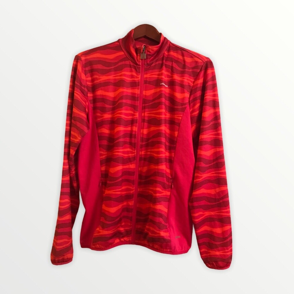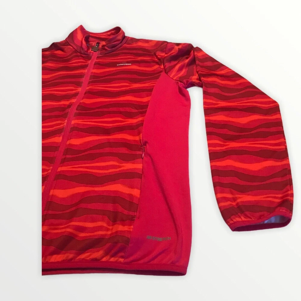 Catmandoo Stretch Mid Layer Golf jacket unlined Muti print orange pink , U.S. medium, U.K. Large. Good condition Bin E-16...