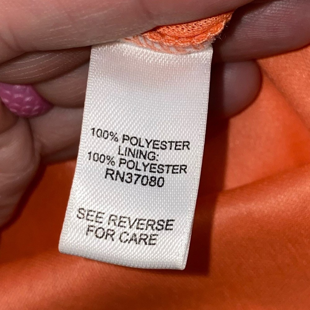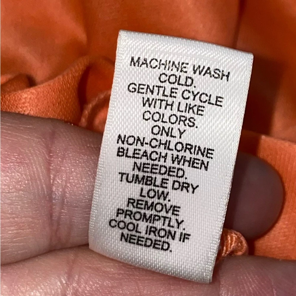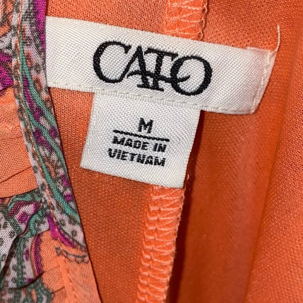 <![CDATA[<div>EUC Cato Peachy Orange Paisley Print Belted Waist Dress Keyhole in front and back Elastic cuffs on sleeves Polyester Lined Length: 37” Pit to pit lying flat: 18.5” Size: M JulAld