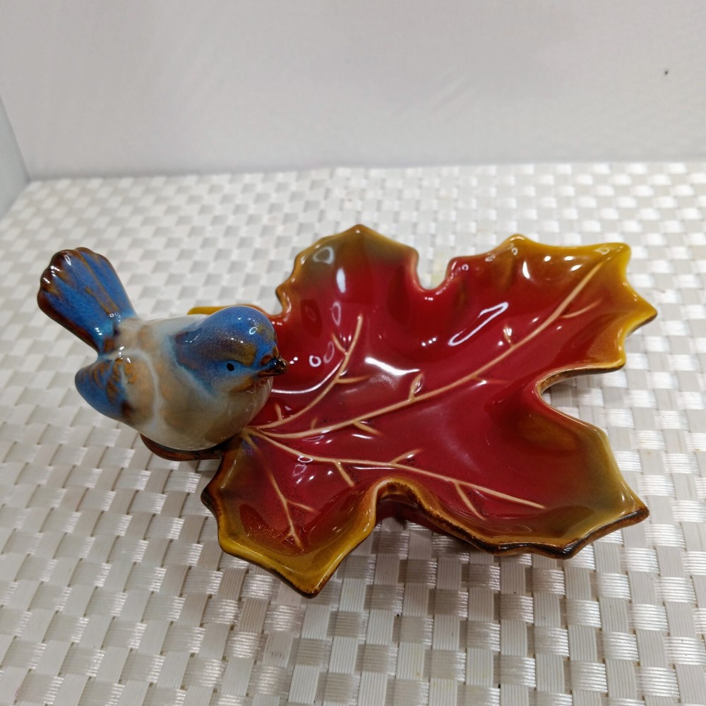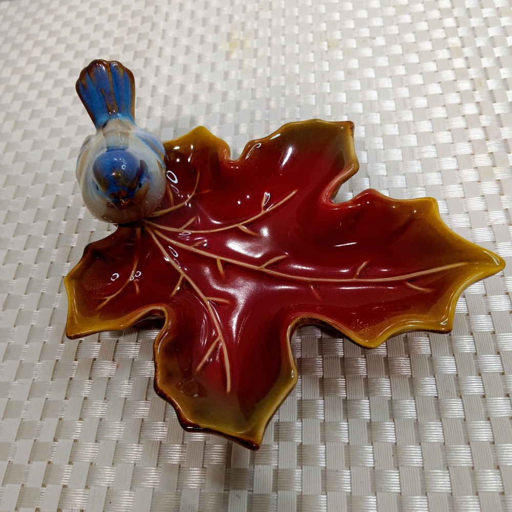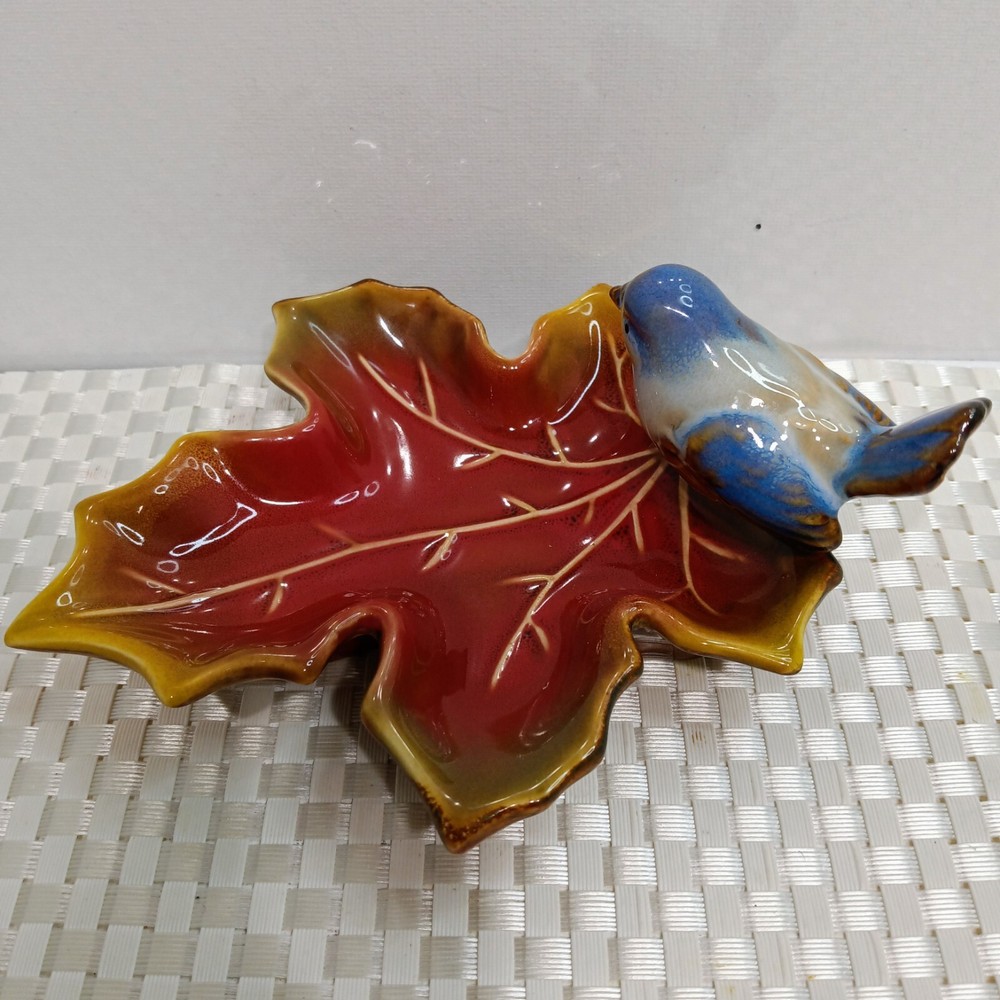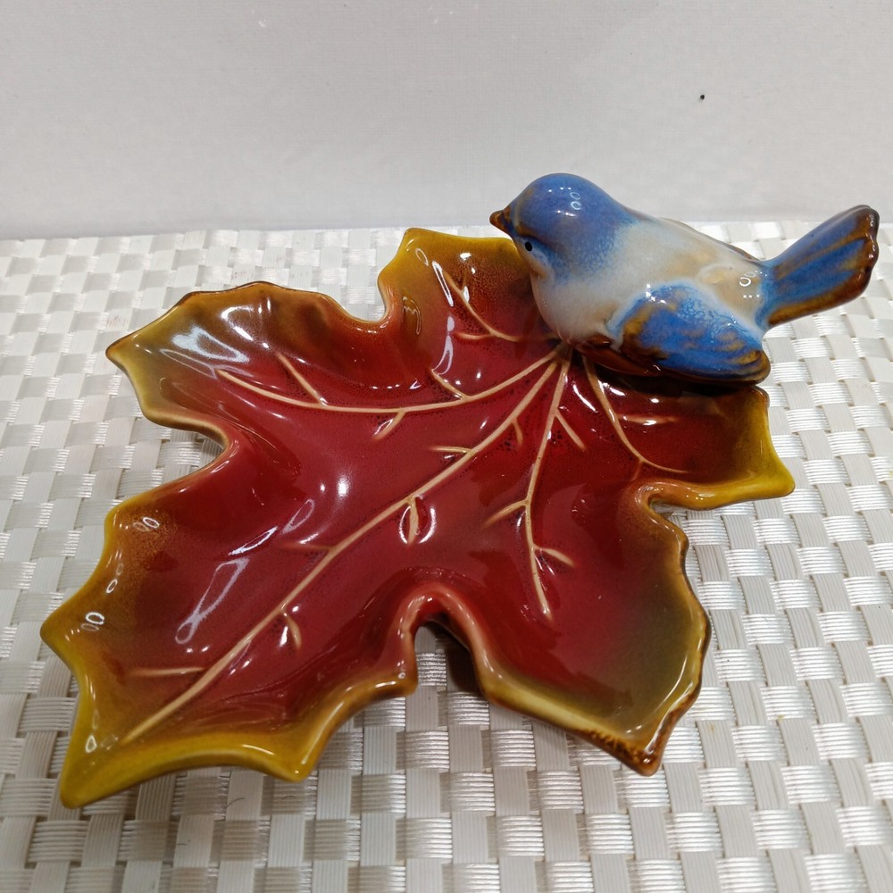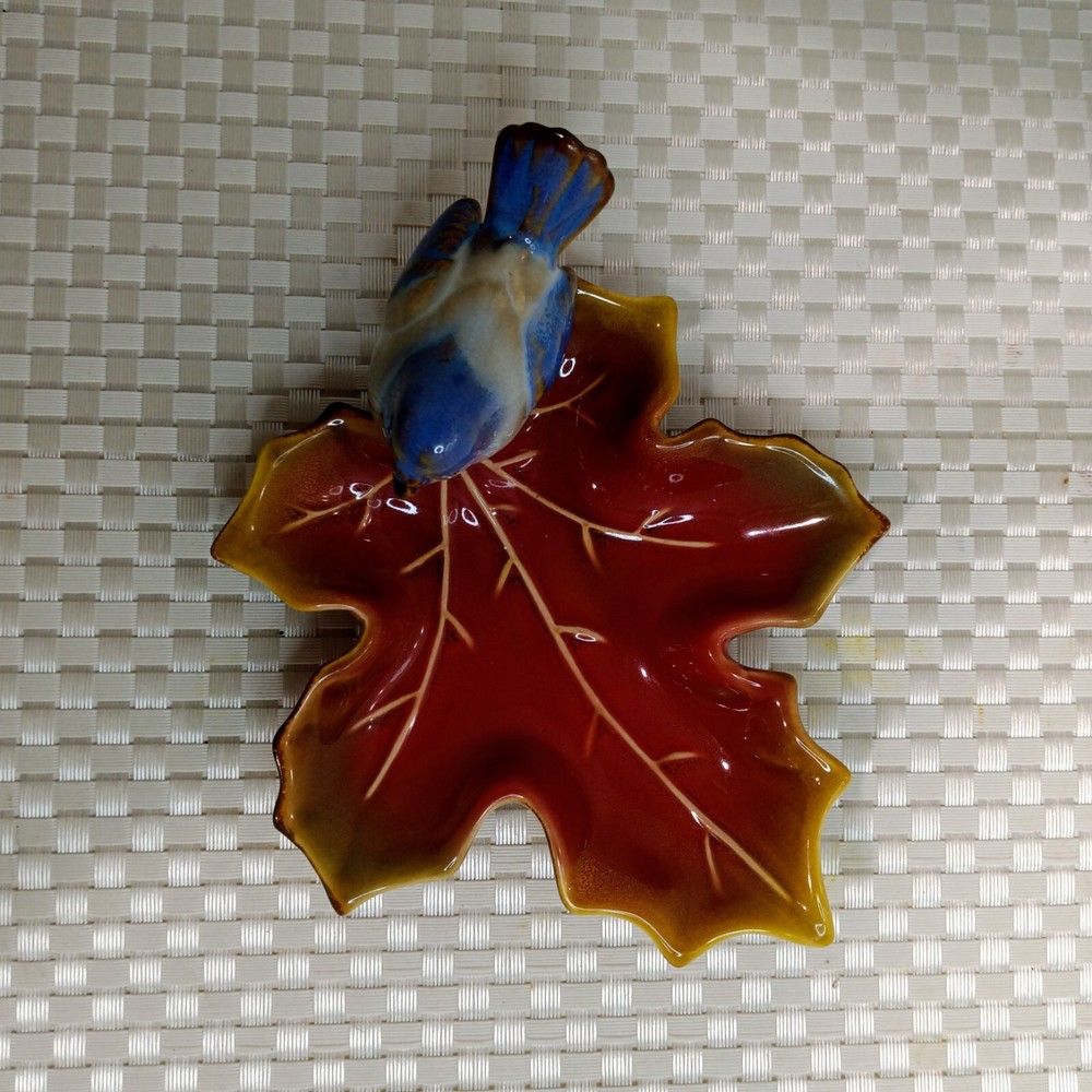 Ceramic Blue Bird Sitting On an Autumn Maple Leaf by Creative Co-Op EUC. Very Cute- Just in time for Fall-...