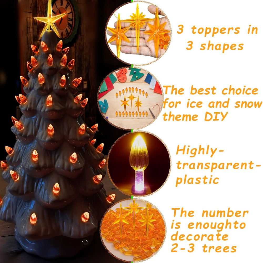 We offer Free Shipping on all order!! Wel come to my stores, The Smart of your choice and satisfaction guarantee. Ceramic Christmas Tree Replacement Lights Bulbs, Orange Medium Twist Plastics Pegs Ornaments for Ceramic Tree(87 Bulbs& 3 Topper Star) Gallery Product Description Why choose 's medium twisted bulbs?chose a material with a light transmittance of 92% to create these beautiful coats for ceramic trees and novel crafts. We carefully match popular colors and cute shapes. We can customize any shape you . Leave a message Let us, we collect your information, and then we will introduce more new shapes in the coming days, put them on the precious heirloom ceramic trees, and place them around your house to decorate your celebration scene be prepared. This is the perfect and fun gift for family and friends during the holiday season.only makes magical and innovative products!Package list:-Color: Orange-Material: 92% PMMA transparent plastic-Number of bulbs: 87-Number of top hat stars: 2customer service:If you have any questions about our products, please click the "Seller Contact" button to send us an email, we will reply as soon as possible, wishes you a happy holiday! Features 【VALUE KIT!】87 pieces of orange medium twisted bulbs and 3 pieces of medium orange topper star (3 shapes ) are great accessories for decorating ceramic christmas trees. 【ORANGE BULBS SIZE】 Bulb : 11/16”Heigh,7/16”Width,Stem Size:3/8”Length,3/16”Diameter. 【TOPPER SIZE】[Star of Bethlehem Topper ]:4“Height,Stem Size: 3/16”Diameter. [Pentagram Top ]:4“ Height ,3/16 Diameter.[2020 Cross Great Conjunction Christmas Star ]:4“ Height ,3/16 Diameter. 【HIGH TRANSLUCENT MATERIAL】 Crystal clear Christmas tree bulb kit is perfect for replacing the topper Star lost in your precious ceramic tree and the tree bulbs taken away by the kitten. 【MEANINGFUL GIFT】 Choose the lucky color you , click to buy, and let the retro of the old-fashioned Christmas tree and the stylish light bulbs match the exquisite colors. These charming lights will accompany you through a wonderful and warm festival. Thank you for your business, your trust and your confidence. It is our pleasure to work with our customers. Delivery ☎ If you have any question. Please do not hesitate to contact us. Please send us message via eBay system. We reply every message within 24 hours. If you did not receive our reply. We think maybe we did not receive your message. Please send us message again. Payment Policy ❤ Payment managed by eBay. Shipping Policy We only send the item according to the address on Ebay, the address can't be changed once we pack the item. Please double check your shipping address it before your send the payment. It should take 2-4 business days for the product to reach your destination. If the product doesn't reach your destination within the time limit, please give it an additional 1-2 business days in case of postal delays and/or possible technical issues. We use a selection of shipping services such as UPS, FedEx, USPS etc. We ship only to the 48 contiguous states of America. We do not ship to Hawaii, Alaska, US Protectorates, APO/FPO addresses and PO Boxes. Local pickups are not offered. If it takes any longer than that, please do not hesitate to contact us to resolve the issues. Feedback ❤ We take our reputation seriously, we buy and sell online, so we understand the value of trust. If you are unsatisfied with your order, please contact us and we will work with you to resolve it to your satisfaction. Return Policy - This product comes with 30-Days Money Back Guarantee. - If you receive an item and it doesn't work properly or you don't like it because of any reason at all. - We have a 100% refund/return policy. We will ship you a new item or refund your money for the full sale amount. - For all returned products, buyers MUST contact us for the returning address.