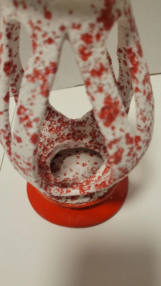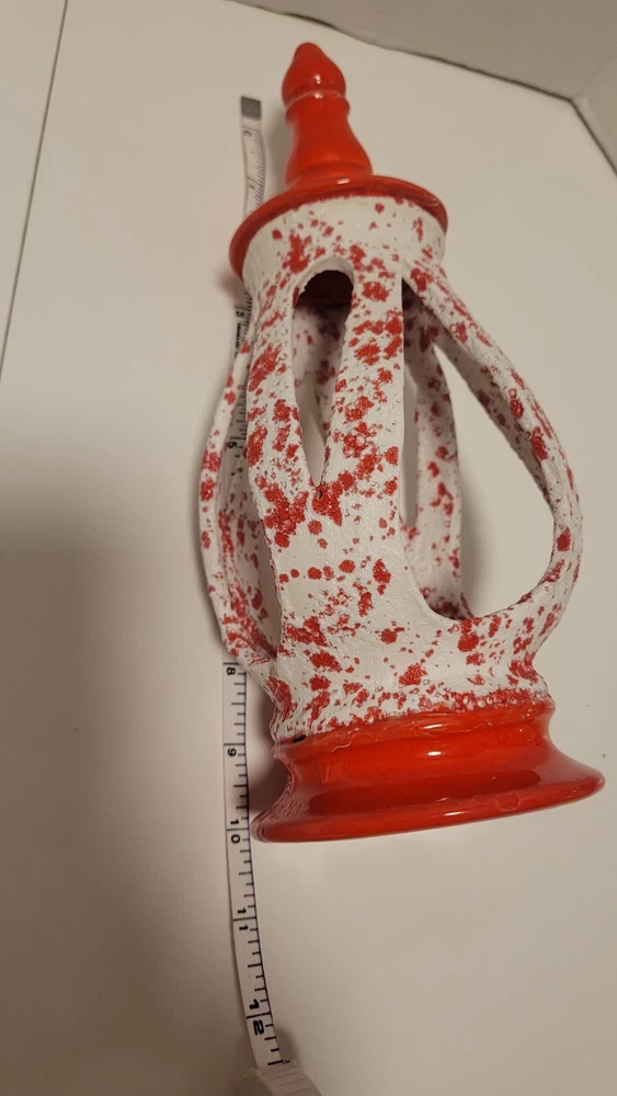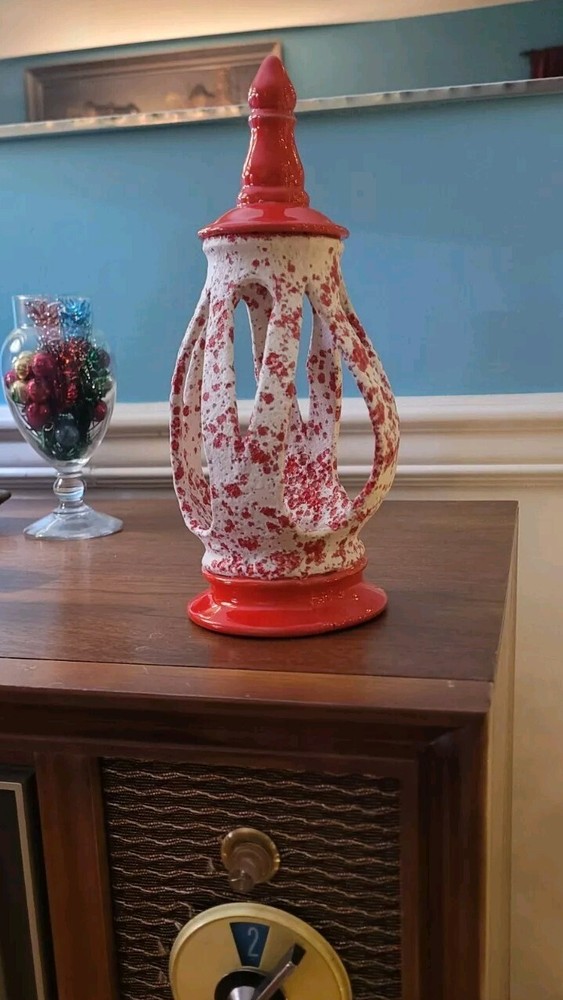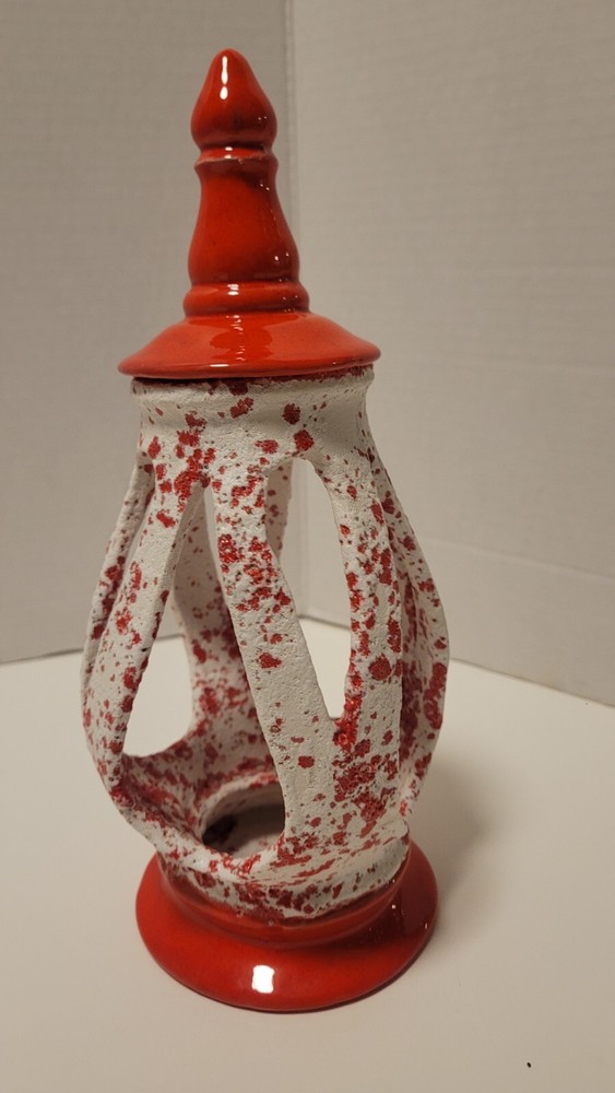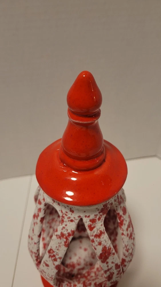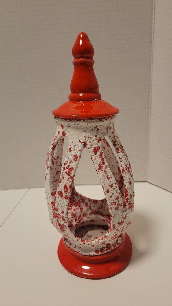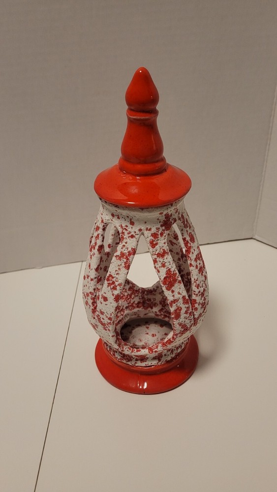 Ceramic MCM Mid Century Modern Christmas Lantern Candle Holder 50's Orange Red. Smoke free home. Very unique piece.