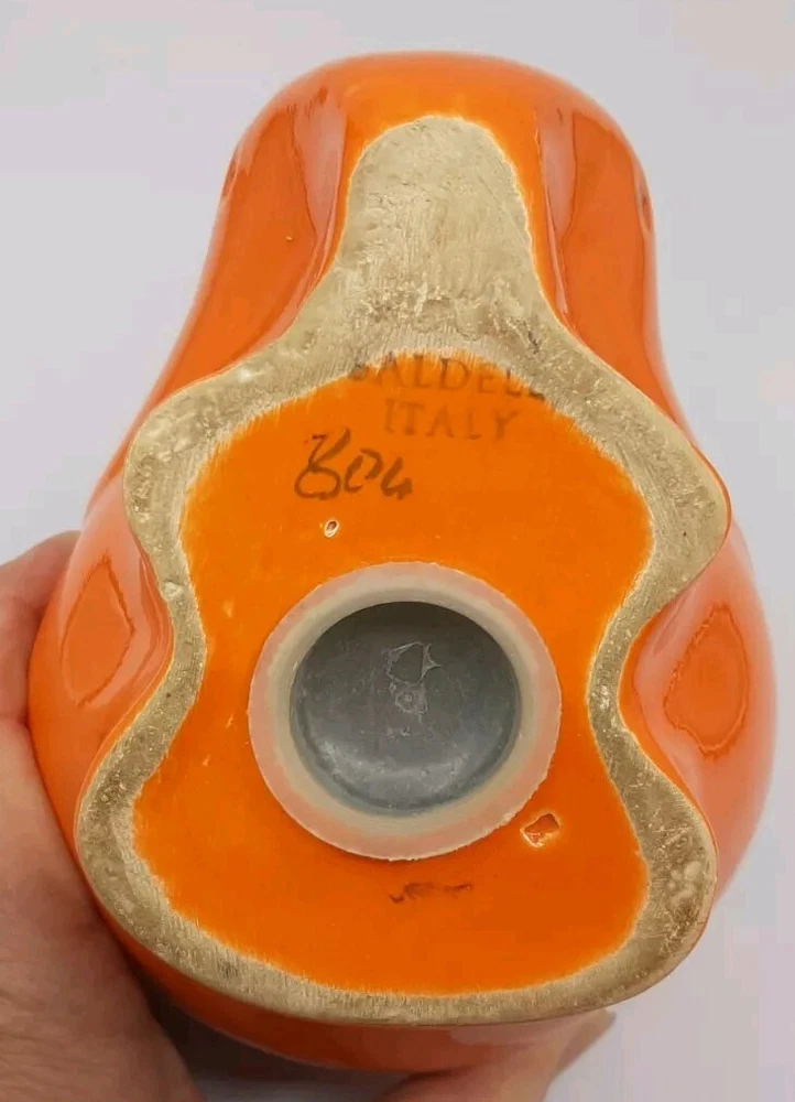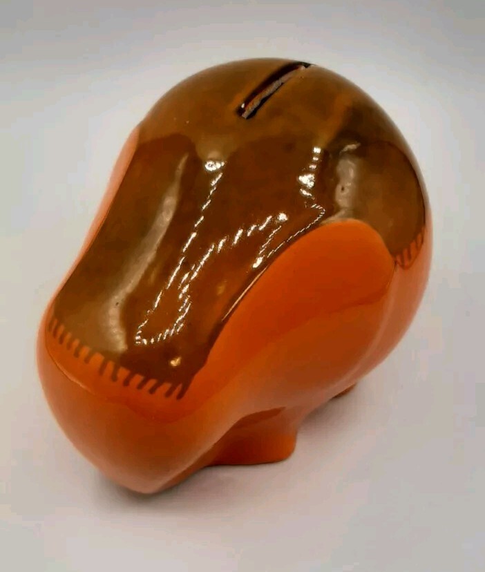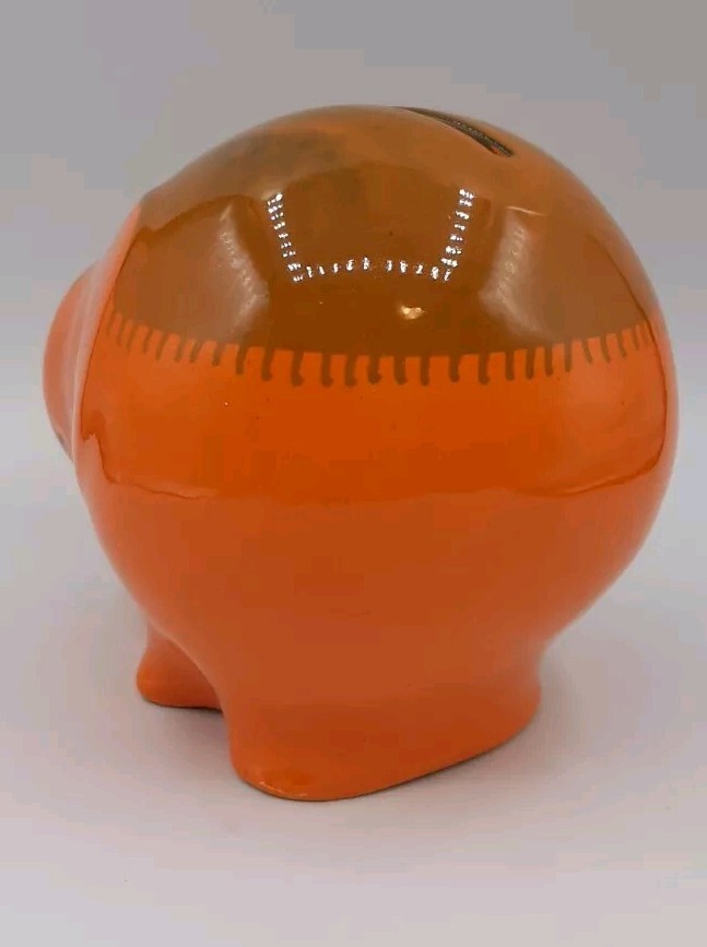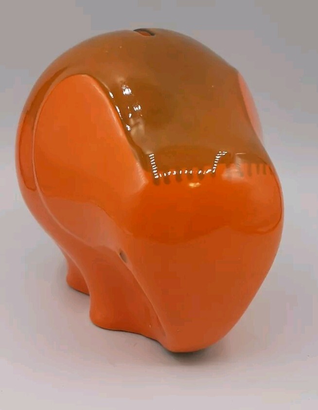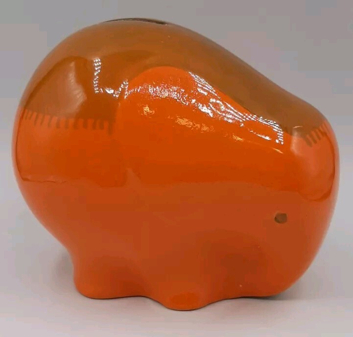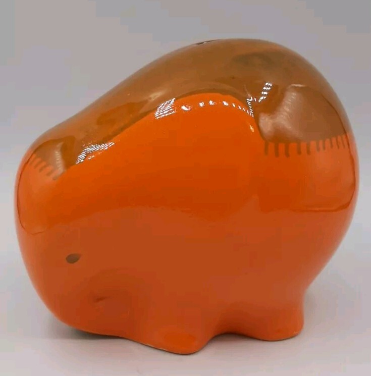 Ceramiche Baldelli Mid-Century Italian Orange Ceramic Elephant Coin Bank Whimsical mid-centry elephant coint bank, money box or piggy bank from the Italian Ceramics company Ceramiche Baldelli. Fired in a two tone orange glossy glaze with had painted fringe blanket on its back. Signed Baldelli Italy 806 but I'm sure is was to say 808. Measures 5 1/2" x 4" x 4 1/2" tall. Gently pre-owned in very good vintage condition. Check out my store at #FunkyFeederFinds for more Funky Finds.