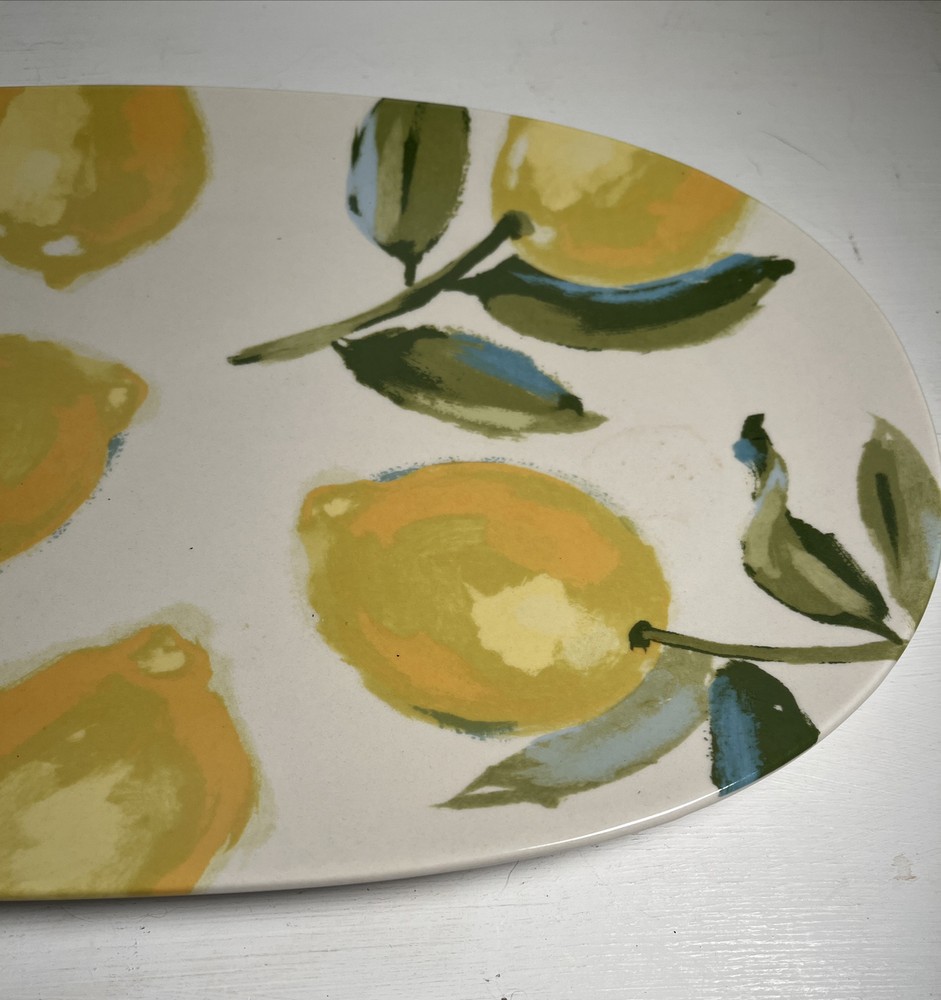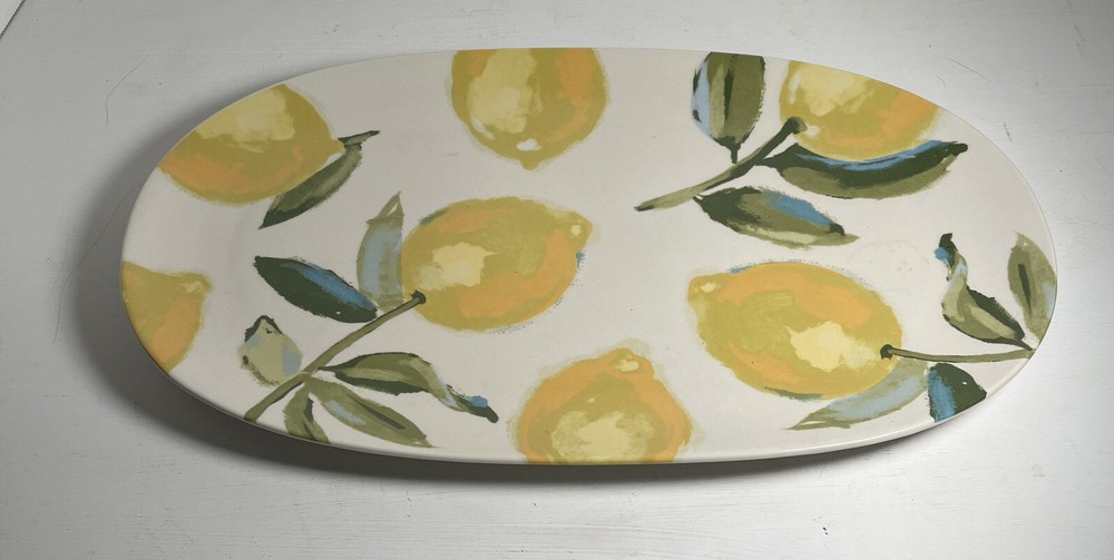 Chad Barrett Creative Co Op Stoneware Lemon Serving Platter 15” By 9.5” . Condition is Used. Shipped with USPS Priority Mail.