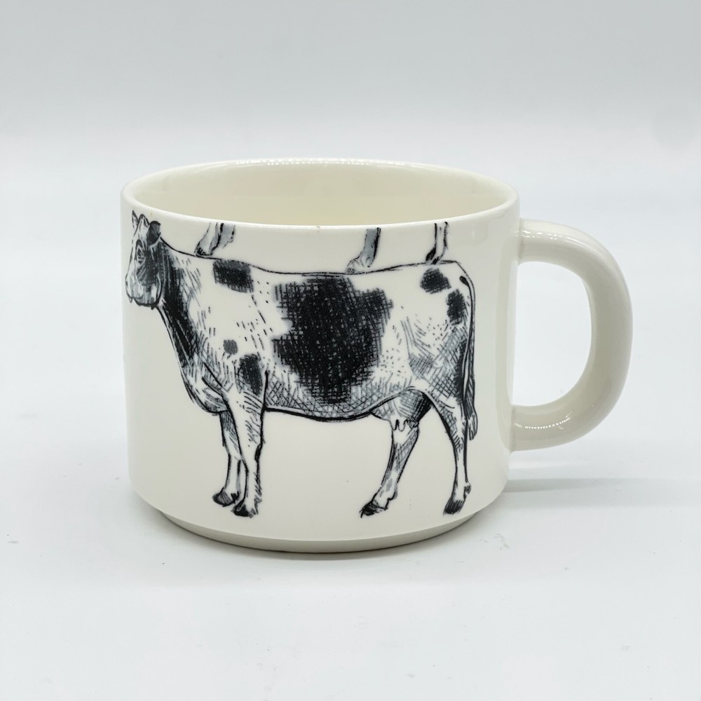 Celebrate the farmer in your life or add a touch of fun to your modern farmhouse kitchen. This Creative Co-op Chad Barrett design coffee mug features a large Holstein dairy cow. The mug measures 3" tall x 4.75" wide with the handle. It is in good condition, with no chips or cracks and minimal signs of use and wear. Please review all pictures carefully and ask any questions before purchasing. All sales are final - no returns accepted. We ship within 2 business days of receiving payment.