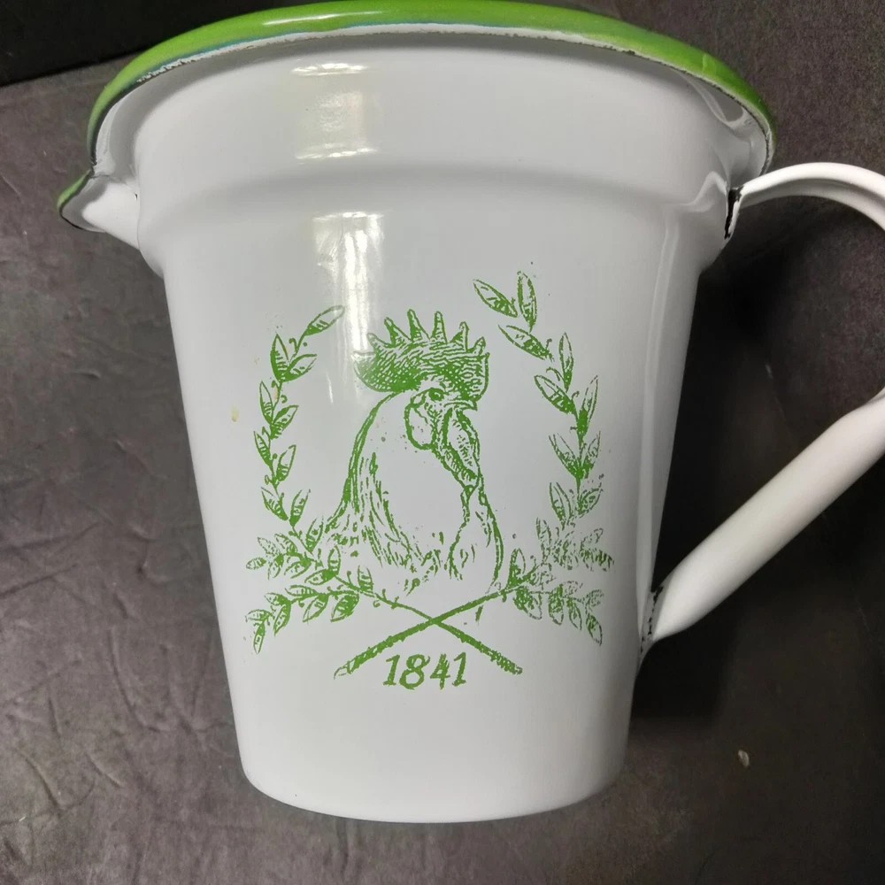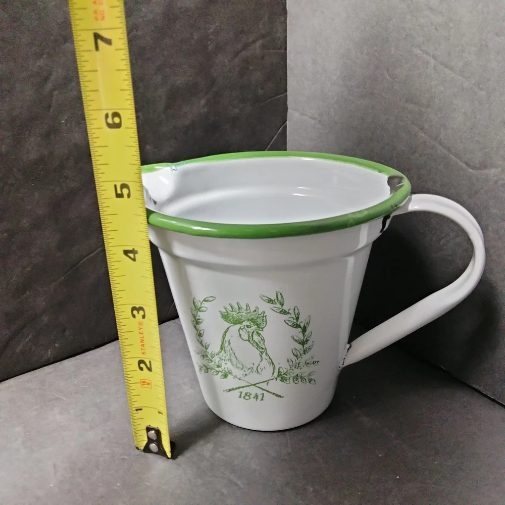 This charming stoneware pitcher by Creative Co-Op is the perfect addition to any farmhouse-themed kitchen. The pitcher features a delightful rooster accent in green and white, adding a touch of rustic charm. It has a single compartment and measures 4.5 inches in height and 5 inches in width, making it small and convenient for everyday use. Made of high-quality stoneware, this original pitcher is oven and dishwasher safe. Its 1950s style and farm animal theme make it a must-have for collectors of dinnerware and serveware. Whether you're filling it with lemonade on a hot summer day or using it as a decorative piece, this pitcher is sure to bring a touch of country charm to your home.