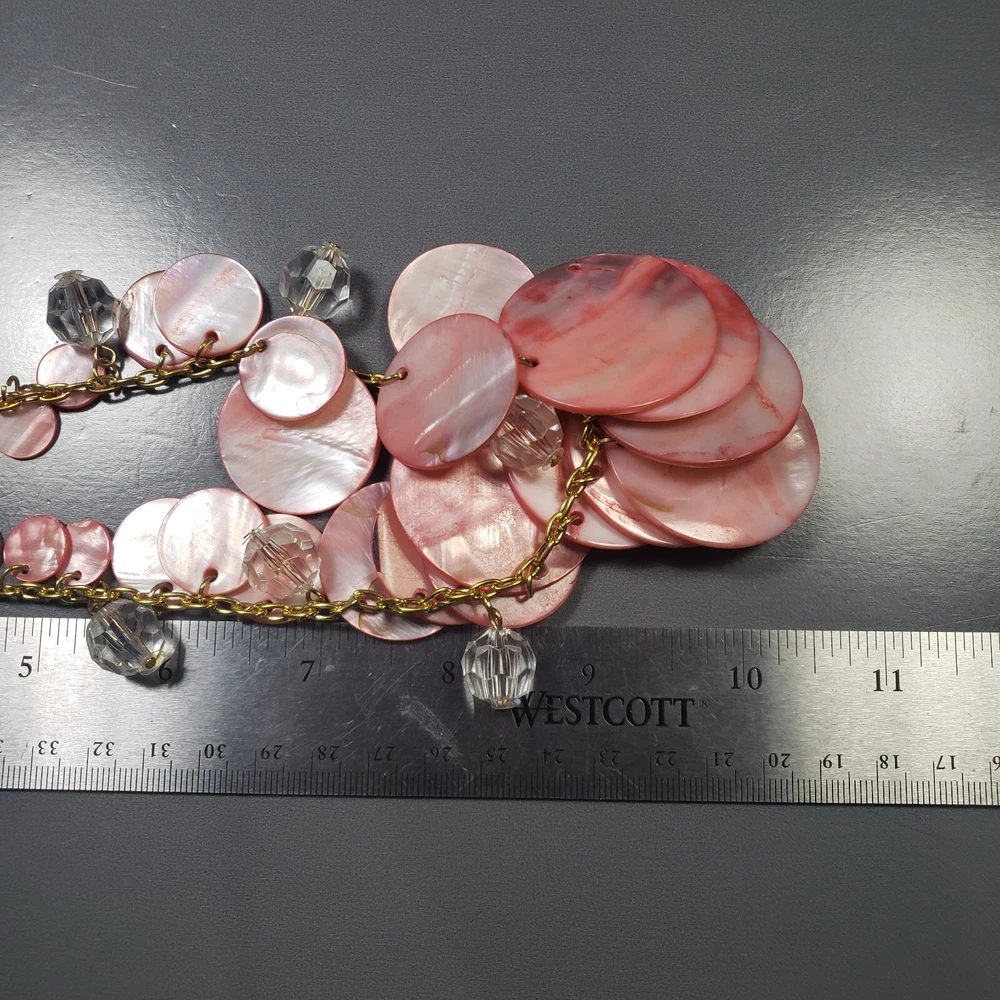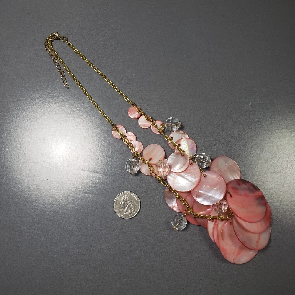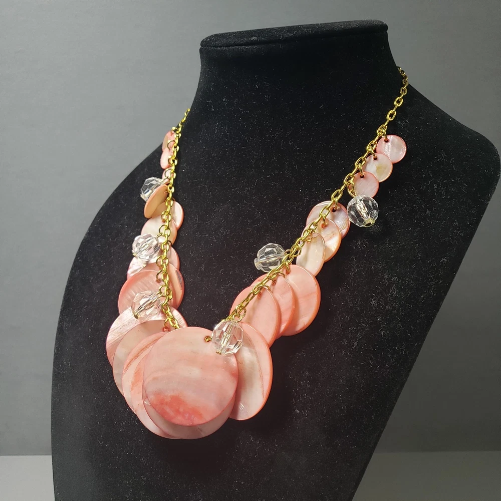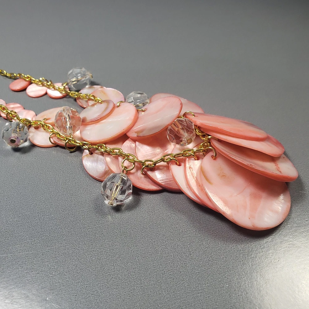 Up for sale is a shell neckla ce. It is gold tone and orange in color . It is in good pre owned condition Please view all posted pictures as they are part of the description. If you have any questions please ask. Please check out my store for more great deals that are listed every day!!