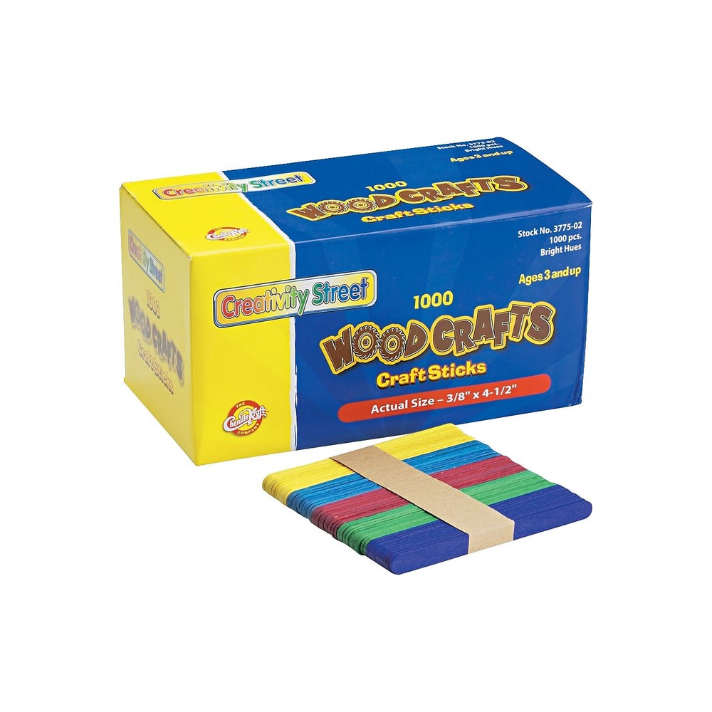 4.50" x 0.37" - 1 / Box - Assorted, Blue, Green, Yellow. Wooden craft sticks are a perfect addition to your arts and crafts projects. Multiple colors let children expand their creativity with fun options. Craft sticks are designed for children ages 3 and up. • Assorted colors include red, yellow, blue and green. • Regular (Popsicle) Size 4 1/2" x 3/8". • 1,000 sticks per box. • Perfect addition to arts and crafts projects. • Multiple colors let children expand their creativity with fun options. • For children ages 3 and up. • Sold as 1000/Box. eBay STORE ABOUT US SAVE SELLER CONTACT US Chenille Kraft Creativity Street Company Colored Wood Sticks, (Popsicle) Size, Assorted, 4.5" x.38", 1,000/Bx PAC3775-02 - Sold as 1000/Box 4.50" x 0.37" - 1 / Box - Assorted, Blue, Green, Yellow. Wooden craft sticks are a perfect addition to your arts and crafts projects. Multiple colors let children expand their creativity with fun options. Craft sticks are designed for children ages 3 and up. • Assorted colors include red, yellow, blue and green. • Regular (Popsicle) Size 4 1/2" x 3/8". • 1,000 sticks per box. • Perfect addition to arts and crafts projects. • Multiple colors let children expand their creativity with fun options. • For children ages 3 and up. • Sold as 1000/Box. You may be interested in our other listings on eBay.