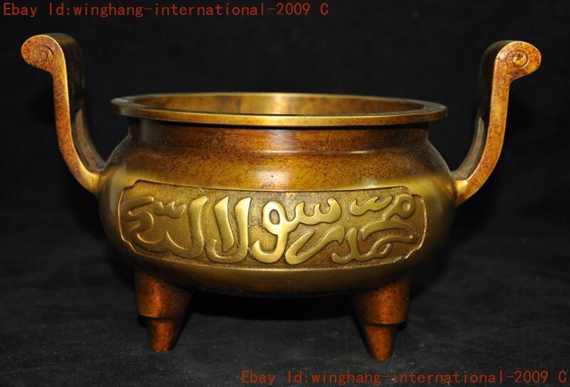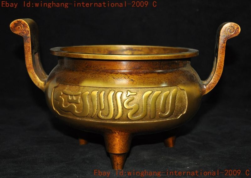 Here is an China Buddhism temple bronze Islam text joss Incense burner Censer statue, As you can see the image, It is in good condition, and was created by skilled craftsmen in traditional style with fine handcrafts . This is a great piece of valuable collection, a valuable personal alter or a very good present. the handwork is very fine with incredible detailing. Don't miss out this chance to get it .Wish you good luck! Size: Height: 6.4 inch .Long: 10.4 inch . breadth: 7.2 inch Size: Height: 16 CM .Long: 26 CM . breadth: 18 CM Weight: 2.9 KG----included the weight of packing materials Materials: bronze Condition: Good condition Origin: China Shipping cost by Air Mail / EMS (7-15 days ) : $Free D.C.AJ Z we only accept pay pal if you have any problems on payment,please inform us via e bay message. 1.We ship regularly Monday to Saturday (Beijing Time) and will ship your items within 1-5 days upon payment received. If we can not ship your item on time for some special reason, we will inform you via e bay message. 2.We are not responsible for nor can we offer any specific adv ices on import fees, duty, customs, VAT or taxes that you may have to pay when your order arrives. 3.We ship the items according to your Pay pal address except the special notes from buyers! Be sure that your Pay pal address is correct when you buy the items in e bay. We do not take responsibility for item loss due to wrong address. 4.Estimated delivery time: Shipping may be influenced by holidays, events and some other uncertainties. If you dislike the seemingly long shipping time, please think carefully to bid or buy the item. We do not want to get a negative or neutral or low D S R score because of shipping time. If you have special demand on shipping time, please inform me via e bay message. We want to give you a happy shopping experience, when you are not satisfied with our products, please contact us on E BAY, we are responsible seller, we will solve your problem, please believe us,thanks! If you're in any way dissatisfied with your purchase, let me know through "MY MESSAGES" or "Ask Seller Questions" or our mailbox. We will solve it for you. We are committed to ensuring that you are completely satisfied with every transaction. 100% Satisfaction guaranteed ! We will reply your mail with in 24 hours normally. Sometimes have a little delay due to the weekends or holidays. If you can't get our mail after 48 hours, please check your spam or contact to us via E bay. In addition to contact us through eBay or you can send your message to our mailbox. Any question, please feel free to contact us, we will always do our best to serve you.