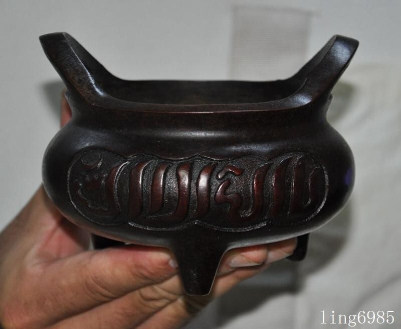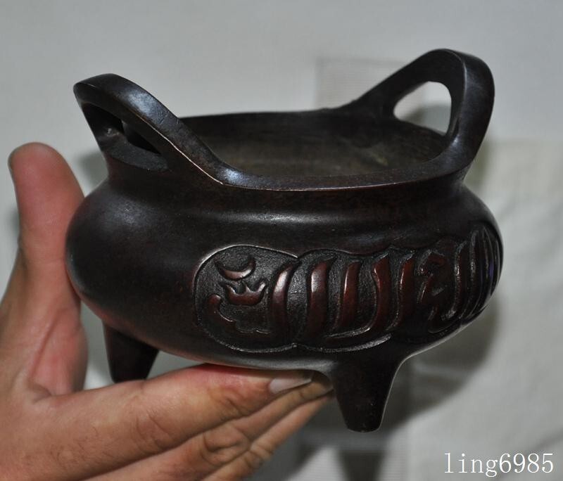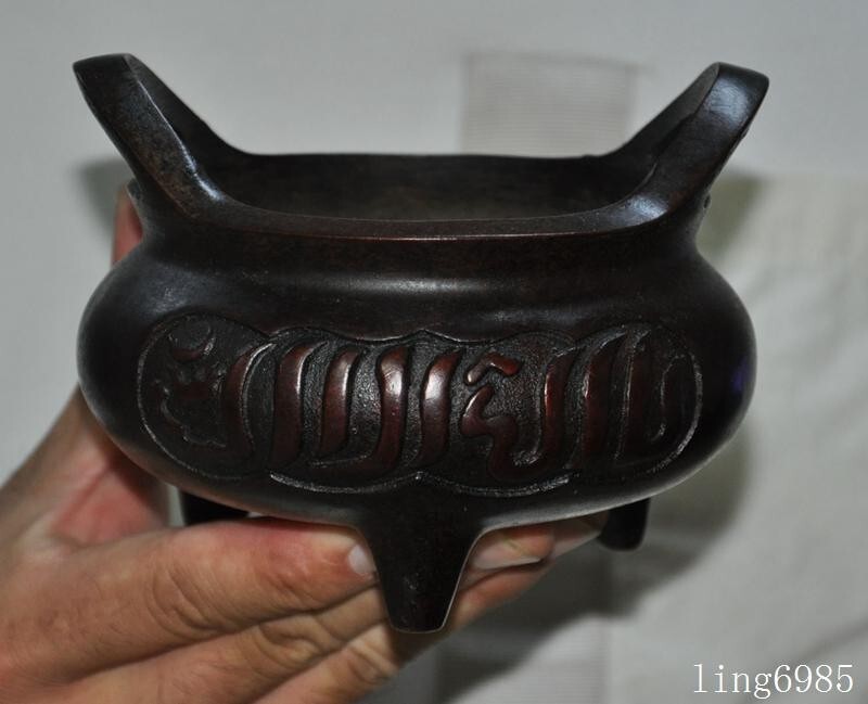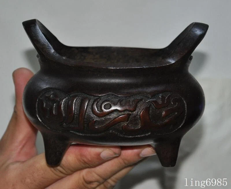 Here is an China Buddhism temple bronze Islam text statue joss Incense burner Censer , As you can see the image, It is in good condition, and was created by skilled craftsmen in traditional style with fine handcrafts . This is a great piece of valuable collection, a valuable personal alter or a very good present. the handwork is very fine with incredible detailing. Don't miss out this chance to get it .Wish you good luck! Size: Height : 3.8 i nch .Long:4.8 inch . width:4.8 inch Size: Height :9.5 CM .Long:12 CM . width:12 CM Weight: 1.6 KG----included the weight of packing materials Materials: bronze Condition: Good condition Origin: China Shipping cost by Air Mail (7-15 days ) : $Free D.G.I Z