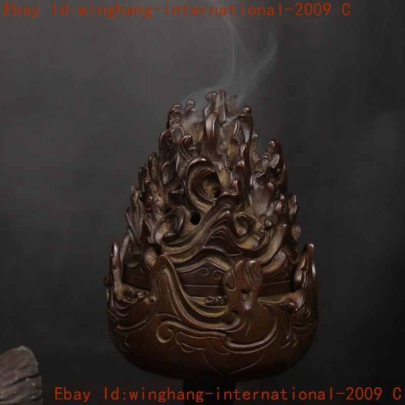 Here is an China Chinese Buddhism temple bronze Boshan joss Incense burner Censer statue , As you can see the image, It is in good condition, and was created by skilled craftsmen in traditional style with fine handcrafts . This is a great piece of valuable collection, a valuable personal alter or a very good present. the handwork is very fine with incredible detailing. Don't miss out this chance to get it .Wish you good luck! Size: Height: 8 inch .Long: 4.6 inch . breadth: 3.4 inch Size: Height:20 CM .Long:11.5 CM . breadth: 8.5 CM Weight: 2.5 KG----included the weight of packing materials Materials : Bronze Condition: Good condition Origin: China Shipping cost by Air Mail / EMS (7-15 days ) : $Free D.C.BD DD&LH