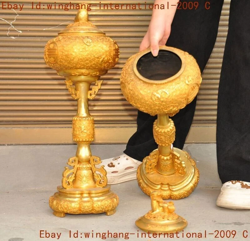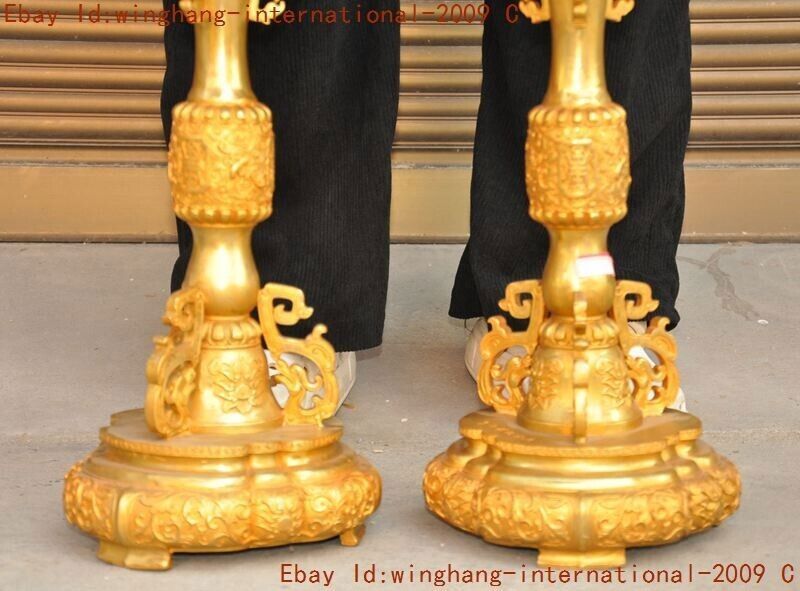 Size: Height: 22.4 inch .Long: 7.6 inch . breadth: 7.6 inch Size: Height: 56 CM .Long: 19 CM . breadth: 19 CM Weight: 10.8 KG----included the weight of packing materials Materials: bronze Gilt Condition: Good condition Origin: China
