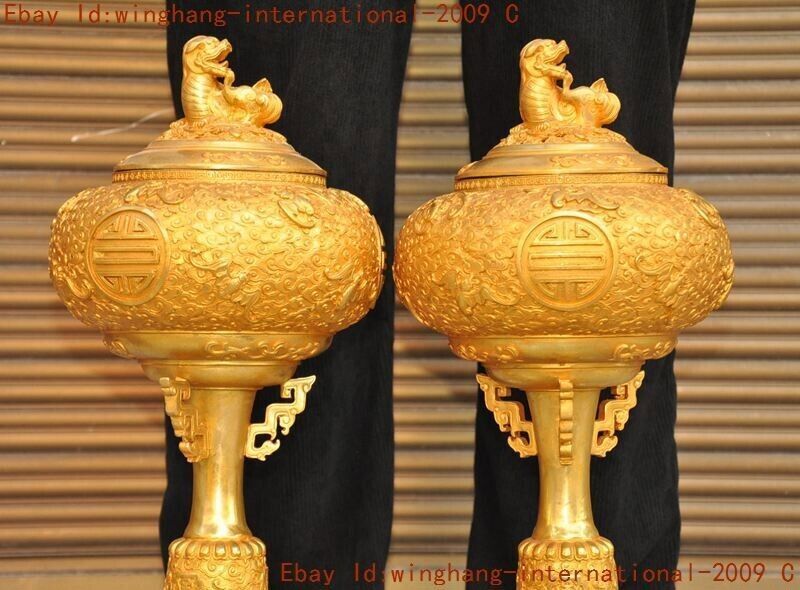 | Seller Notes | “22"China ancient bronze Gilt Foo Dog lion beast statue Joss Incense burner Censer” |