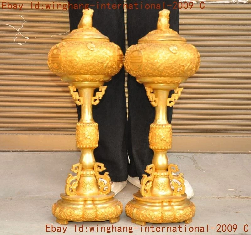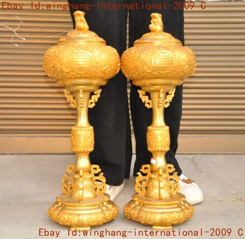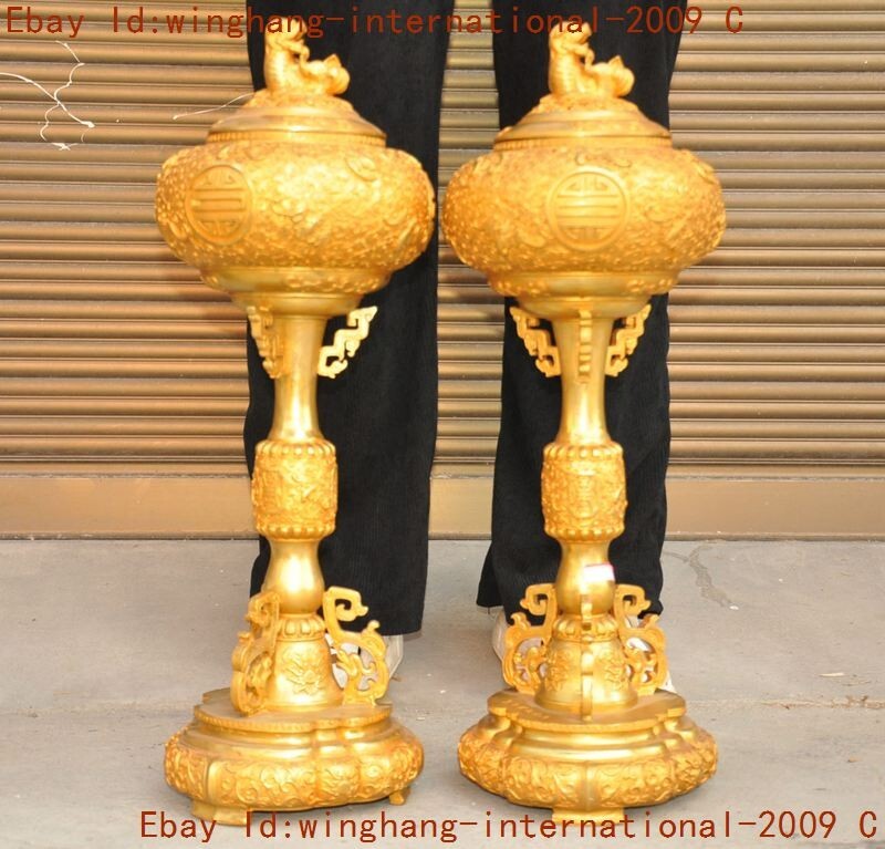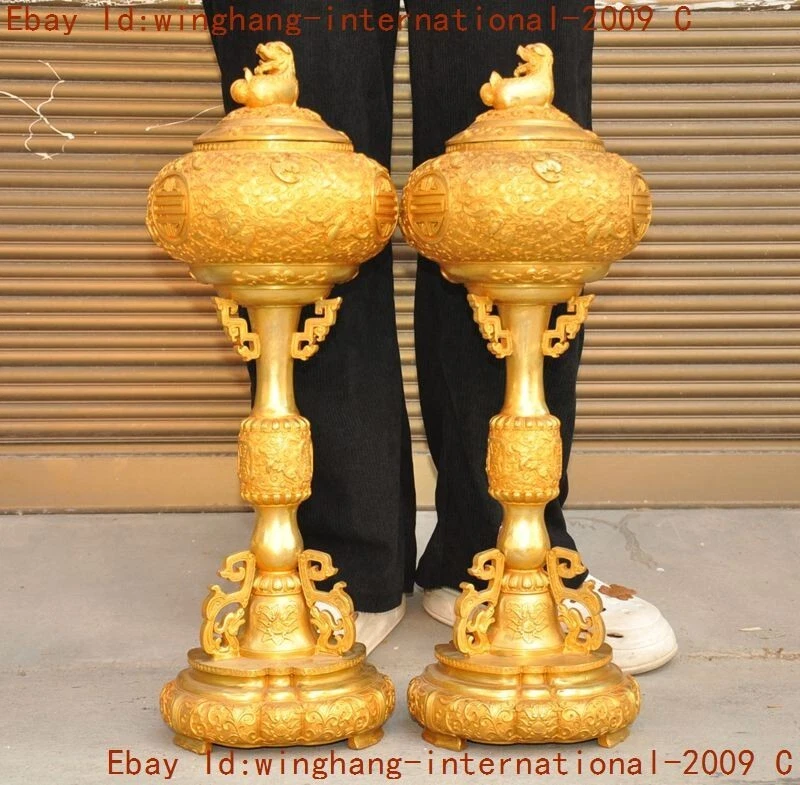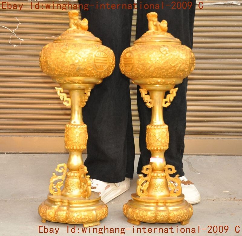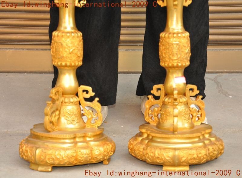 Here is an China ancient bronze Gilt Foo Dog lion beast statue Joss Incense burner Censer , As you can see the image, It is in good condition, and was created by skilled craftsmen in traditional style with fine handcrafts . This is a great piece of valuable collection, a valuable personal alter or a very good present. the handwork is very fine with incredible detailing. Don't miss out this chance to get it .Wish you good luck! Size: Height: 22.4 inch .Long: 7.6 inch . breadth: 7.6 inch Size: Height: 56 CM .Long: 19 CM . breadth: 19 CM Weight: 10.8 KG----included the weight of packing materials Materials: bronze Gilt Condition: Good condition Origin: China Shipping cost by Air Mail / EMS (7-15 days ) : $Free we only accept pay pal if you have any problems on payment,please inform us via e bay message. 1.We ship regularly Monday to Saturday (Beijing Time) and will ship your items within 1-5 days upon payment received. If we can not ship your item on time for some special reason, we will inform you via e bay message. 2.We are not responsible for nor can we offer any specific adv ices on import fees, duty, customs, VAT or taxes that you may have to pay when your order arrives. 3.We ship the items according to your Pay pal address except the special notes from buyers! Be sure that your Pay pal address is correct when you buy the items in e bay. We do not take responsibility for item loss due to wrong address. 4.Estimated delivery time: Shipping may be influenced by holidays, events and some other uncertainties. If you dislike the seemingly long shipping time, please think carefully to bid or buy the item. We do not want to get a negative or neutral or low D S R score because of shipping time. If you have special demand on shipping time, please inform me via e bay message. We want to give you a happy shopping experience, when you are not satisfied with our products, please contact us on E BAY, we are responsible seller, we will solve your problem, please believe us,thanks! If you're in any way dissatisfied with your purchase, let me know through "MY MESSAGES" or "Ask Seller Questions" or our mailbox. We will solve it for you. We are committed to ensuring that you are completely satisfied with every transaction. 100% Satisfaction guaranteed ! We will reply your mail with in 24 hours normally. Sometimes have a little delay due to the weekends or holidays. If you can't get our mail after 48 hours, please check your spam or contact to us via E bay. In addition to contact us through eBay or you can send your message to our mailbox. Any question, please feel free to contact us, we will always do our best to serve you. D.G.BB DXM&YU
