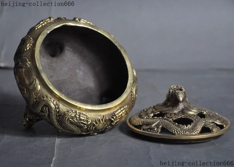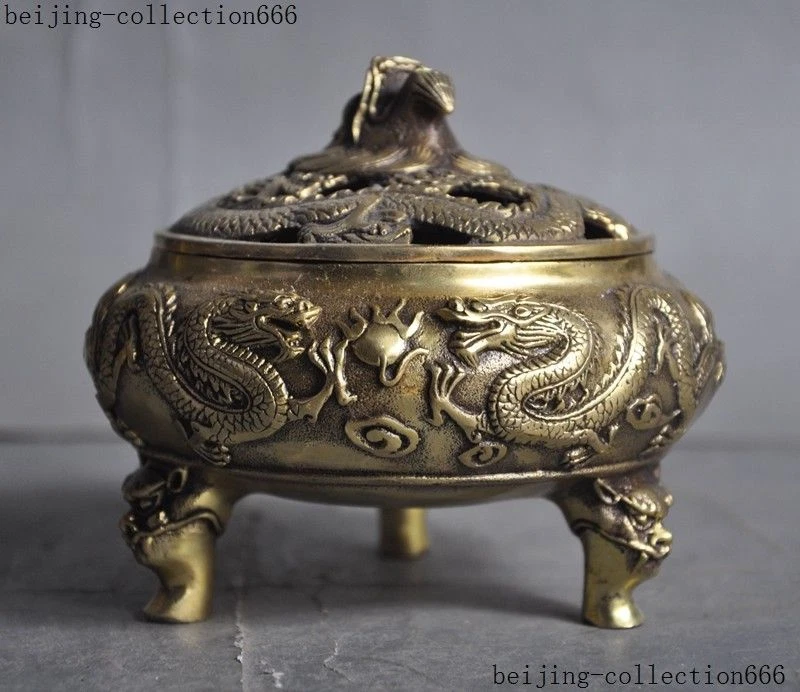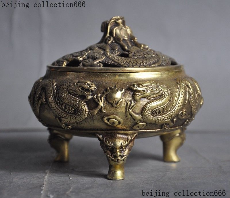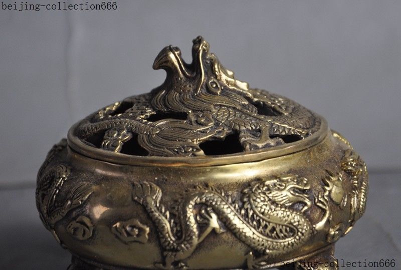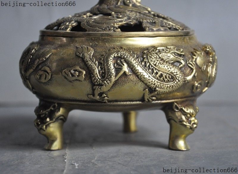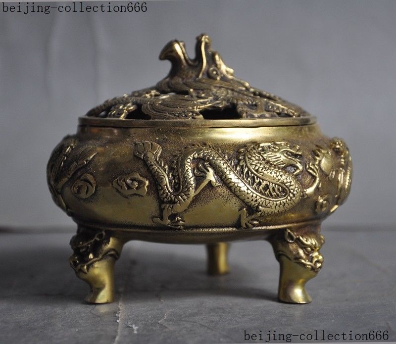 Here is an China brass temple Joss 2 Dragon play Beads phoenix statue Incense Burner Censer, and was created by skilled craftsmen in traditional style with fine handcrafts. This is a great piece of valuable collection, a valuable personal alter or a very good present. Don't miss out this chance to get this statue and brings good luck to you! Size: Height: 4.4 inch .Long: 4.8 inch . breadth: 4.8 inch Size: Height: 11 cm .Long: 12 cm . breadth: 12 cm Weight: 1.5 KG----included the weight of packing materials Materials: brass Condition: Good condition Origin: China Shipping cost by EMS Express Mail ( 7------15 days ) : $Free . Here is your chance to own an important empowered item now. We wish you all much good luck in obtaining this sacred one. Super nice! As you view in the images, it was Very nicely finished and complete with many fine details. Very particular and infrequent. It is a great piece of valuable collection or a very good present.Don't miss out this chance to get it .Wish you good luck! Shipping&insurance: Items will be shipped in 24 hous after payment cleared using Airmail service by China Post. It is International Delivery, So it may take a little time to arrive you, the estimated delivery time is 7-15 bussiness days. Please get in touch with us if you can't receive it in that period. Payment: We Only Accept Paypal on Ebay. For specific requirements, please feel free to contact us. Return Policies : If you are not satisfied, we will make an exchange or refund the payment within 2 weeks. The item you will receive is exactly same as the photo. If it is not same as the photo, I will refund all your payment. Please email me in time if you are dissatisfied with the items. I will try my best to resolve the problem. If don't want the item, please return it to me in good condition. Then I will refund the price of the item to you. Or I could replace it with another item of same value. Feedback: Feedback is important to all of us participating on the eBay community. We are always working hard for maintain high standards of excellence and strive for 100% customer satisfaction. So your POSITIVE FEEDBACK is very important. Thanks for your watching and happy bidding. 160925 Jlh