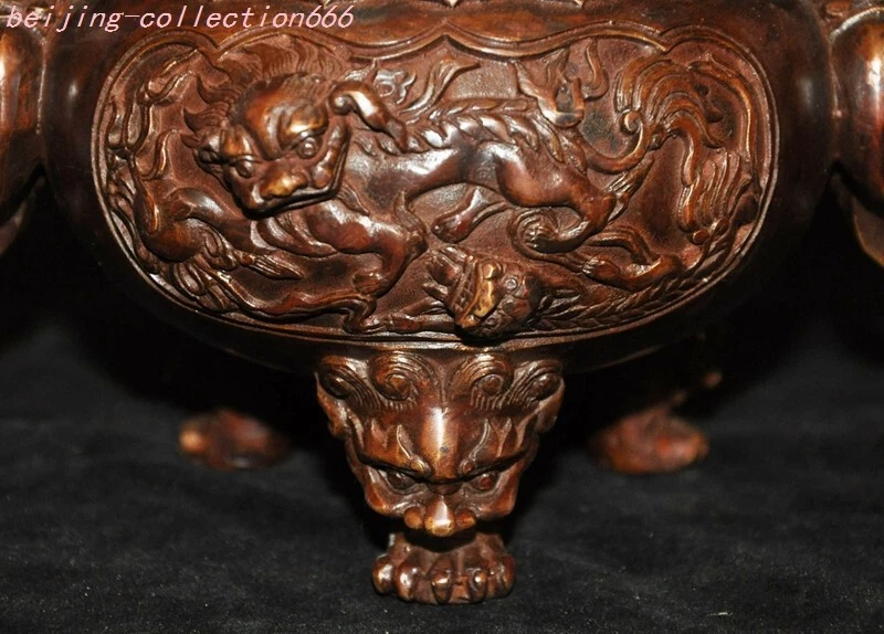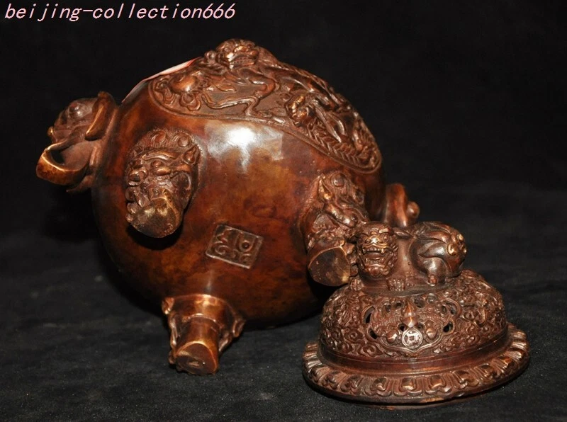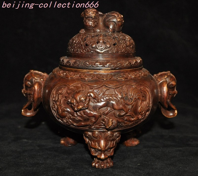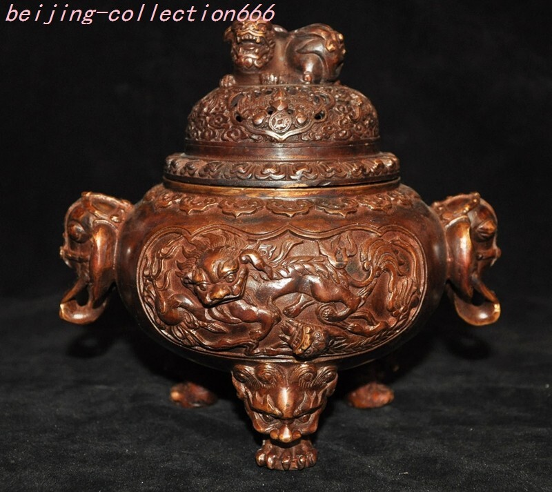 Here is an China bronze wealth animal lion foo dog burn incense joss sticks burner censer , As you can see the image, It is in good condition, and was created by skilled craftsmen in traditional style with fine handcrafts . This is a great piece of valuable collection, a valuable personal alter or a very good present. the handwork is very fine with incredible detailing. Don't miss out this chance to get it .Wish you good lucky! Size: Height : 6.8 inch .Long:6.8 inch . Width:5.2 inch Size: Height:17 cm .Long:17 cm . Width:13 cm Weight: 1.8 K G ----included the weight of packing materials Materials: bronze Condition: Good condition Origin: China Shipping cost by Air Mail EMS (7--15 days ) : $Free D.C.E 4&xh we only accept pay pal if you have any problems on payment,please inform us via e bay message . 1.We ship regularly Monday to Saturday (Beijing Time) and will ship your items within 1-2 days upon payment received. If we can not ship your item on time for some special reason, we will inform you via e bay message. 2.We are not responsible for nor can we offer any specific adv ices on import fees, duty, customs, VAT or taxes that you may have to pay when your order arrives. 3.We ship the items according to your Pay pal address except the special notes from buyers! Be sure that your Pay pal address is correct when you buy the items in e bay. We do not take responsibility for item loss due to wrong address. 4.Estimated delivery time: Shipping may be influenced by holidays, events and some other uncertainties. If you dislike the seemingly long shipping time, please think carefully to bid or buy the item. We do not want to get a negative or neutral or low D SR score because of shipping time. If you have special demand on shipping time, please inform me via e bay message. We want to give you a happy shopping experience, when you are not satisfied with our products, please contact us on E BAY, we are responsible seller, we will solve your problem, please believe us,thanks! If you're in any way dissatisfied with your purchase, let me know through "MY MESSAGES" or "Ask Seller Questions" or our mailbox. We will solve it for you. We are committed to ensuring that you are completely satisfied with every transaction. 100% Satisfaction guaranteed ! We will reply your mail with in 24 hours normally. Sometimes have a little delay due to the weekends or holidays. If you can't get our mail after 48 hours, please check your spam or contact to us via E bay. In addition to contact us through eBay or you can send your message to our mailbox. Any question, please feel free to contact us, we will always do our best to serve you. Business Hours: Mon-Sat 9:00-17:30:00 (Hong Kong Time GMT+8:00)