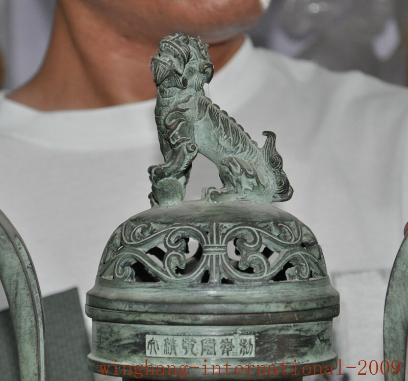 Here is an China temple bronze animal Foo dog lion beast Joss Incense burner Censer statue , As you can see the image, It is in good condition, and was created by skilled craftsmen in traditional style with fine handcrafts . This is a great piece of valuable collection, a valuable personal alter or a very good present. the handwork is very fine with incredible detailing. Don't miss out this chance to get it .Wish you good luck! Size: Height: 12 inch .Long: 11.2 inch . breadth: 6 inch Size: Height: 30 CM .Long: 28 CM . breadth: 15 CM Weight: 5.5 KG----included the weight of packing materials Materials : bronze Condition: Good condition Origin: China Shipping cost by Air Mail / EMS (7-15 days ) : $Free D.H.BD DD&LH we only accept pay pal if you have any problems on payment,please inform us via e bay message . 1.We ship regularly Monday to Saturday (Beijing Time) and will ship your items within 1-2 days upon payment received. If we can not ship your item on time for some special reason, we will inform you via e bay message. 2.We are not responsible for nor can we offer any specific adv ices on import fees, duty, customs, VAT or taxes that you may have to pay when your order arrives. 3.We ship the items according to your Pay pal address except the special notes from buyers! Be sure that your Pay pal address is correct when you buy the items in e bay. We do not take responsibility for item loss due to wrong address. 4.Estimated delivery time: Shipping may be influenced by holidays, events and some other uncertainties. If you dislike the seemingly long shipping time, please think carefully to bid or buy the item. We do not want to get a negative or neutral or low D S R score because of shipping time. If you have special demand on shipping time, please inform me via e bay message. We want to give you a happy shopping experience, when you are not satisfied with our products, please contact us on E BAY, we are responsible seller, we will solve your problem, please believe us,thanks! If you're in any way dissatisfied with your purchase, let me know through "MY MESSAGES" or "Ask Seller Questions" or our mailbox. We will solve it for you. We are committed to ensuring that you are completely satisfied with every transaction. 100% Satisfaction guaranteed ! We will reply your mail with in 24 hours normally. Sometimes have a little delay due to the weekends or holidays. If you can't get our mail after 48 hours, please check your spam or contact to us via E bay. In addition to contact us through eBay or you can send your message to our mailbox. Any question, please feel free to contact us, we will always do our best to serve you.
