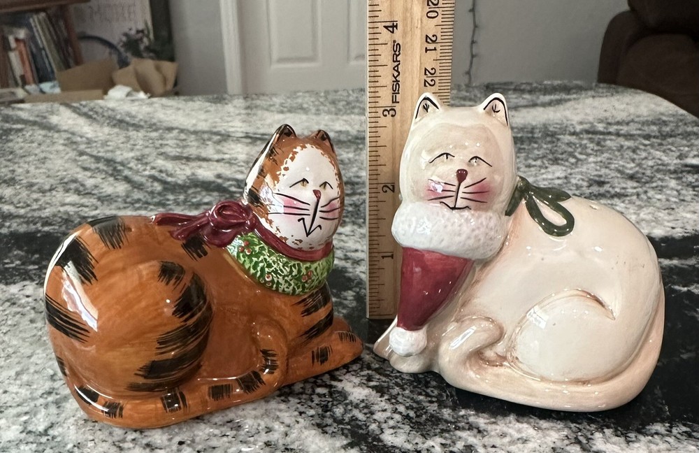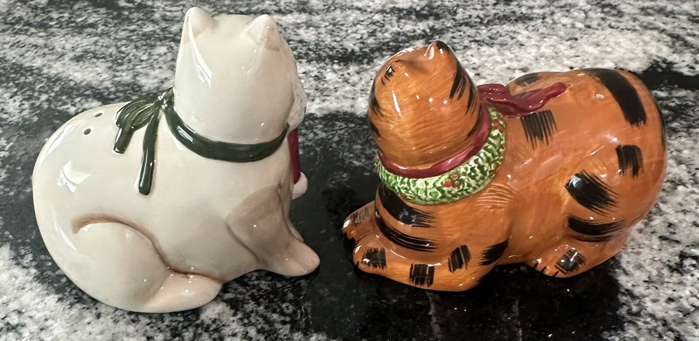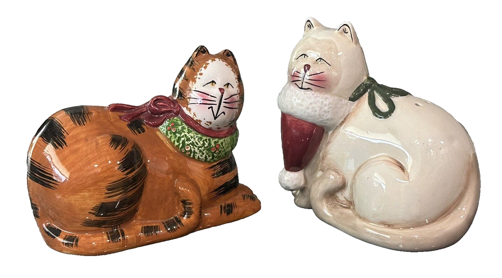 eBay Store: SUPERBLOOM VINTAGE We have been selling on eBay since 1997 so please buy with confidence! DESCRIPTION: Christmas Cats Salt Pepper Shaker Earthenware Orange White By Sakura Pictures are part of the description, any questions please ask. Items shipped securely using USPS/UPS Shipping with tracking, always happy to combine shipping! Please add us to your FAVORITE sellers list as our inventory changes often.