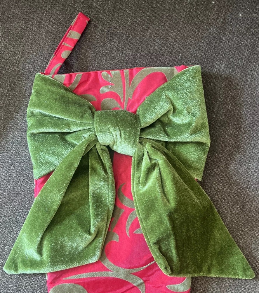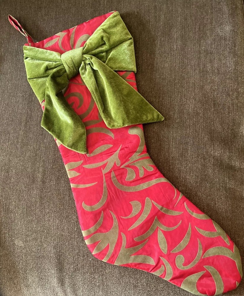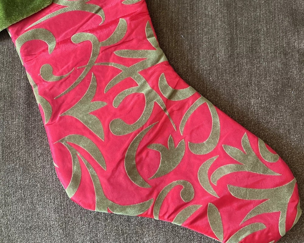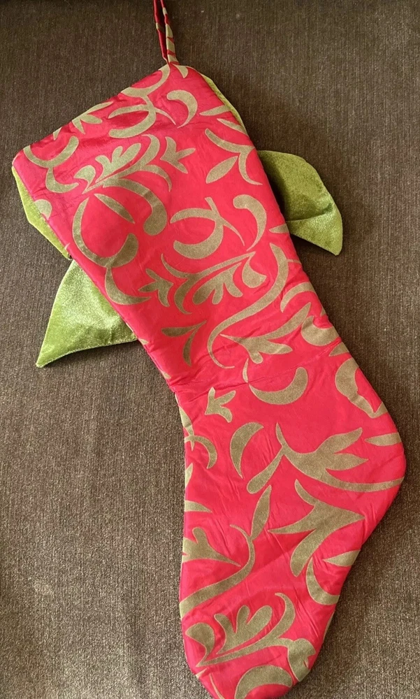 Christmas Stocking Creative Co-op Velvet Satin Look Red Green Bow Filigree Stockings are in excellent pre owned condition. No snags stains holes or tears. Please see pictures for details for this is the stocking you will receive. Dimensions: Length - 26.5” 100% Authentic 30 Day Returns accepted Please contact us with any questions Thank you for visiting our store.