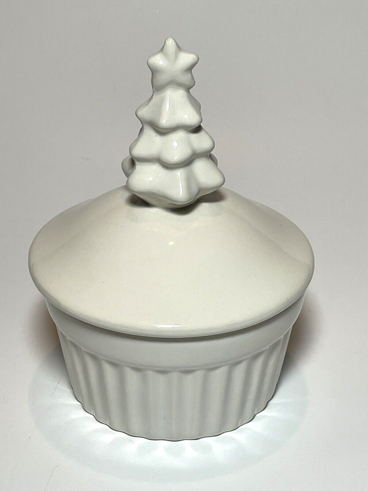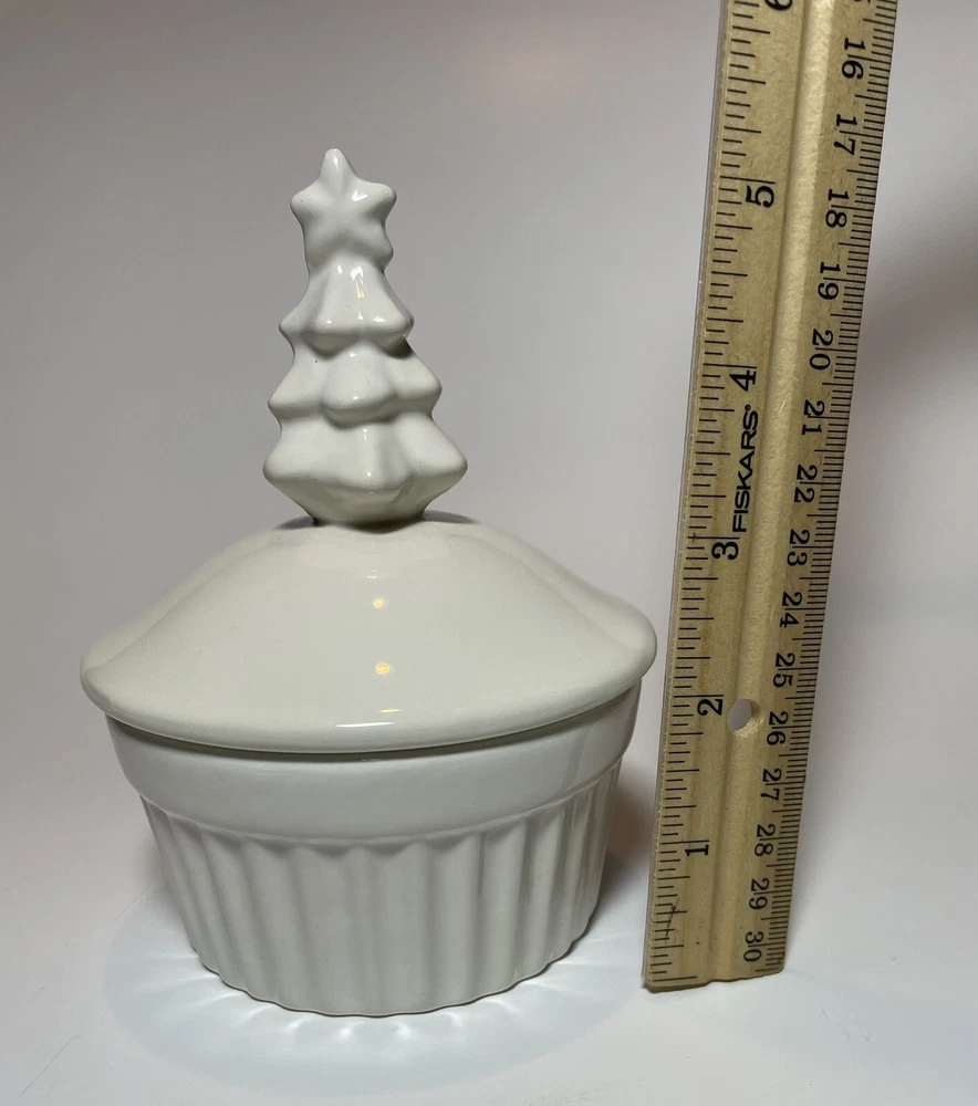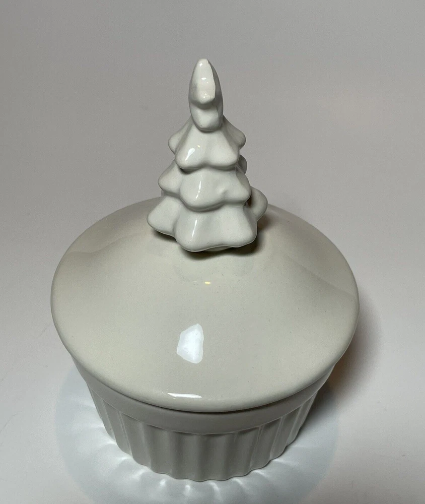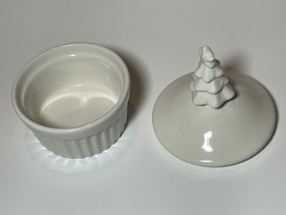 Featured here is a covered dish from Creative Co-Op with a festive Christmas tree on top. The ramekin has a nice warm white color, not a stark white, and could provide an individual serving size of pudding, custard, or any other delicious attractions. Treat yourself to a special dessert. In good condition, lightly preowned. See pictures for closer detail. Measures 5.5” tall, 4” wide, and weighs 9.6 oz prior to packaging. Please message us with any questions! We love to hear from you and typically answer within minutes from 10 a.m. to 10 p.m. ET. We have other great vintage finds available and happily combine shipping for discounts! Just click the link to our store to view our items. New items added daily. Thanks for stopping, and enjoy shopping!