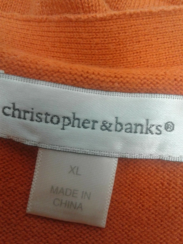 You are looking at a Christopher & Banks Womens Orange Top W/Dickey Insert & Mid-waist "Faux" Belt Size XL. Condition: Pre-Owned Condition Measurements Laying Flat: Bust: 42 Length 22.5 Sleeve Length 18.5 Materials: 100% Cotton