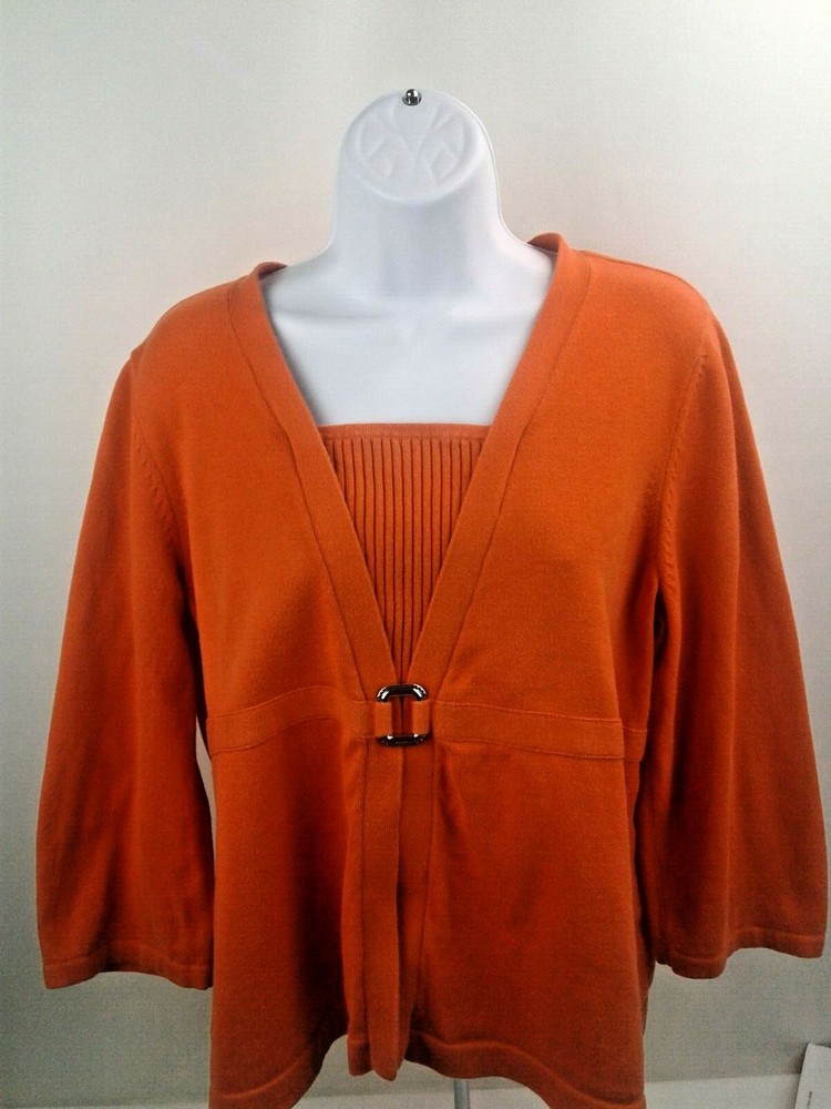 You are looking at a Christopher & Banks Womens Orange Top W/Dickey Insert & Mid-waist "Faux" Belt Size XL. Condition: Pre-Owned Condition Measurements Laying Flat: Bust: 42 Length 22.5 Sleeve Length ...