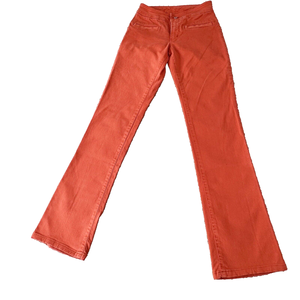 Cimarron Bootcut Stretch Color Pants 28" Orange Zip Mid Rise Pre owned very good - good condition *brand tag is missing waist 24.5 in hip 33 in rise 8 in inseam 29 in leg open 7 in weight 0.12 lb These Cimarron pants are perfect for any fashion-forward woman who wants to add some bold color to her wardrobe. The orange shade is eye-catching and unique, while the stretchy material ensures a comfortable, flattering fit. The bootcut leg style is always in style and the zip closure adds a sleek finishing touch. This pair of pants is ideal for any casual or dressy occasion, and can be paired with a variety of tops and shoes to create a versatile, stylish look. Whether you're running errands, heading to work, or going out for a night on the town, these pants are sure to make a statement.