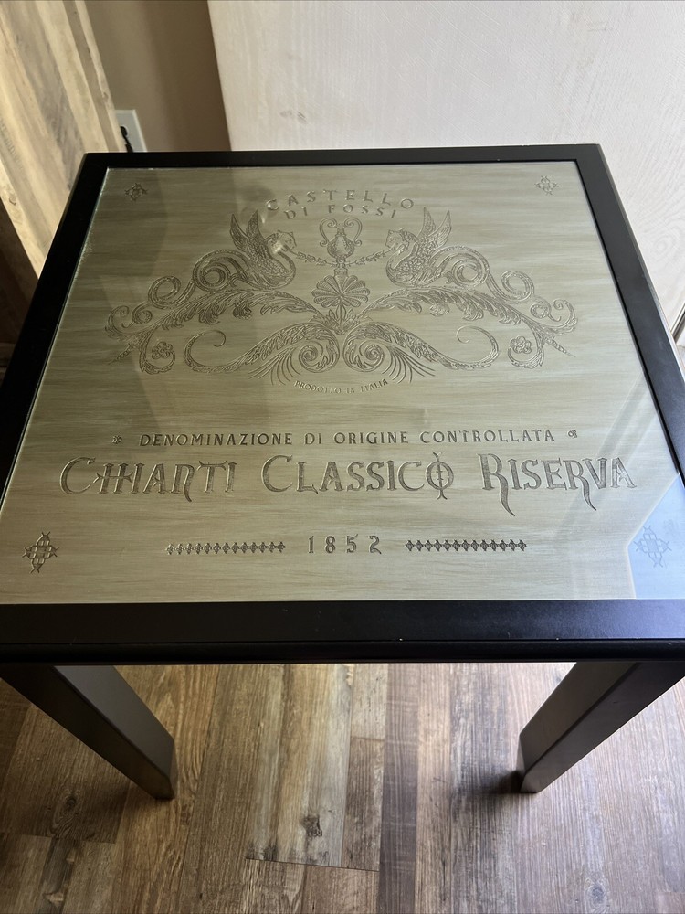 Beautiful Italian Wine art work displayed on a table, made by the Phoenix Creative Company