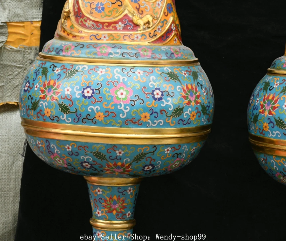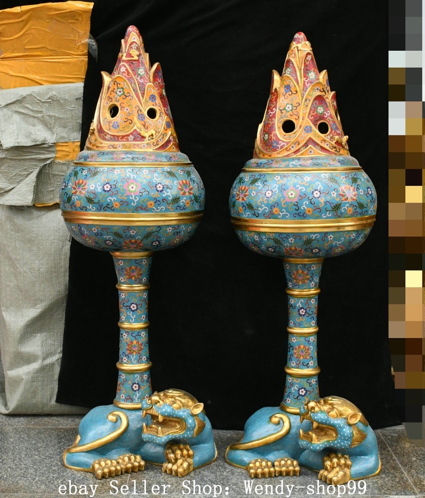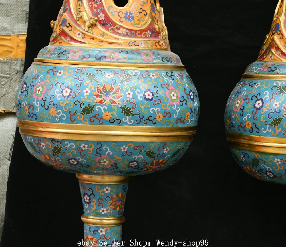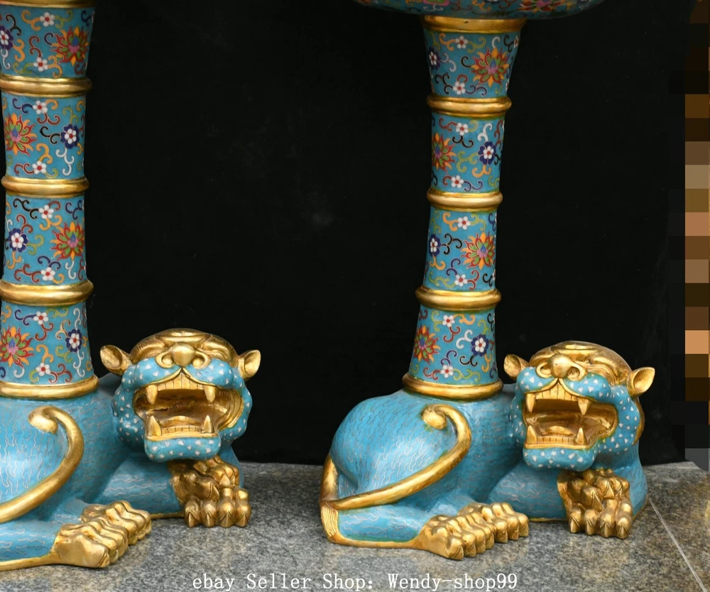 Welcome To our Curio Store : wendy-shop99 Honored Customers: Welcome to our store and enjoy shopping in "Wendy". In our Store the B ronze sculpture. Animal. Vase.Flower Pot Bowl .Incense Burner .Cloisonne Enamel Itrems . buddha statues. Buddhist Ritual Items etc is our speciality .Many of the items we sell come from our own personal collection and have been in our family for a very long time . My great-grandfather was the first in this family to start collecting art & antiques when he still lived in Shanghai and Tibet around 1936 ,some of the paintings he once collected can now be seen in museums around the .8globe . We won't make money from the shipping cost, ifyou dislike the item when you receive it ,we can refund all of your money to you within thirty dys. Please confidence for bidding ! ! . Here is an: Cloisonne Enamel Copper Gold Dragon Lion Boshan Joss Incense Burner Censer Pair Materials: Cloisonne Enamel Copper Gold Size: Height 37.7 i nch . Long 13.3 inch . breadth 10.6 inch Weight 42 KG--ncluded the eig1ht of packing mateials Condition: Good condition Origin: China Shipping cost by EMS Express Mail ( 5------10 days ) : $Free Item Description .3 . Combine Shipping Discount We will accept the combine shipping together way ,If you like my shop many items and enjoy to get once ,Please bid it in confidence and i will give you a big discount off the shipping cost if buy more item once, Here the discount standard as follow : Buy 2-3 items once we can offer you the 10% discount on Price, Buy 4-6 items once we can offer you the 15% discount on price , Buy 7-10 items able to get 20% discount on price. Over 10 items please feel free to email us request for especially price ! Payment Method We prefer PayPal payment methods. It is safer and faster! If you do not have a PayPal account, how to use your credit card to pay? ① Visit www.paypal.com ② Click Send Money at the top of the page. ③ Enter payment information and click Continue. ④ Enter your information to create a PayPal account and click Agree & Continue. ⑤ Review the details of your payment and click Send Money. If you can not use above payment method, please email me for your payment method before bidding. Thank you! Shipping Method There are 3 international shipping methods we will offer: ① We provide two options for shipping : DHL & EMS ( Express Mail Service) Since we get the agreement with the both shipping company. they are all fast and safe worldwide ways that easy to tracking online any time also arrive home directly. Mostly items will be using by EMS that only Very Larger items we will using by DHL. You will be informed the tracking number once the parcel has been sent out. : httpss://www.ems.com.cn/english-main.jsp ② For jewelries and other small items, we offer registered airmail by China Postal Service. ③ For Hungary, the Netherlands, Russia Federation, Iceland, Anguilla, Czechic, Slovak, Anguilla, Chile and other eastern European states, Africa and Middle East countries. We will consider ship by TNT, FedEx based on our shipping company. Return Policy All the item will be packed by specialty with strong packing for shipping and High quality items for arrive to let you 100% happy. if for whatever reason you are not completely satisfied, simply cancel within 30 days of application for a full refund. the item must be in it's original condition. CONDITION aOF RETURNaED ITEMS: As received. ORIGINAL ARE RETURNS ALLOWED: Only if different from description or larger broken. TIMING OF RETURNS :Items can be returned within 30 days. NOTICE SELLER BEFORE RETURNING : We will trying to make your 100% Happy. RETURNED FEES: 10% 0ffered by Us. World Cooperate: We are very happy to get the chance to touch all world friends. We can shipping by Sea shipping who order by wholesale that over 10 items and We will offer you a especial price by private. Please add me to your favorites seller and feel free to advice if you having any interesting. We are looking towards for world cooperate and long business-ship.2024.4.1