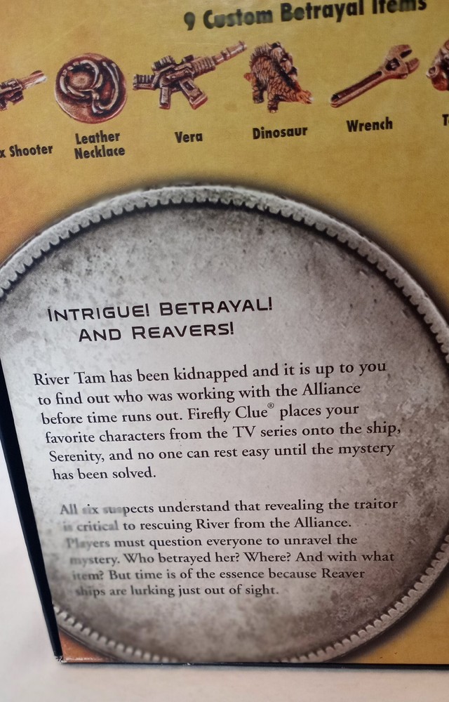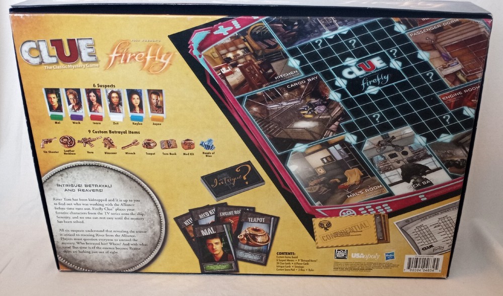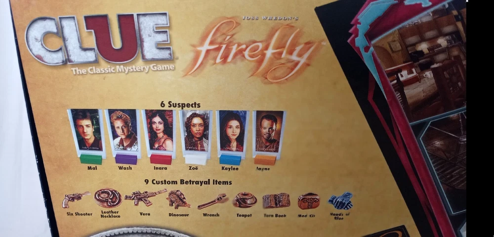 Clue The Classic Mystery Game Joss Whedon's Firefly Edition 100% Complete EUC Shipping charge can be combined if you would like to purchase multiple items. Please contact me before purchase. Pictures are part of the description, so please take a close look. If you have any questions please send me a message. We use recycled/reclaimed packing material. Please reuse the box and packaging if able. Thank you for checking out our item. 🦉 A&A Antiques and Aquisitions