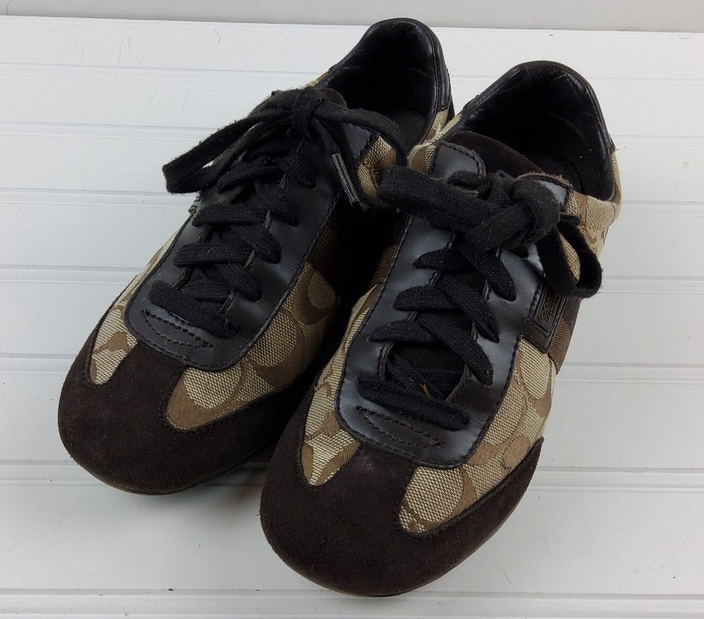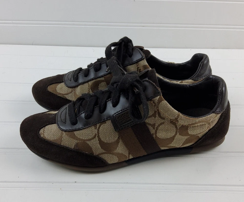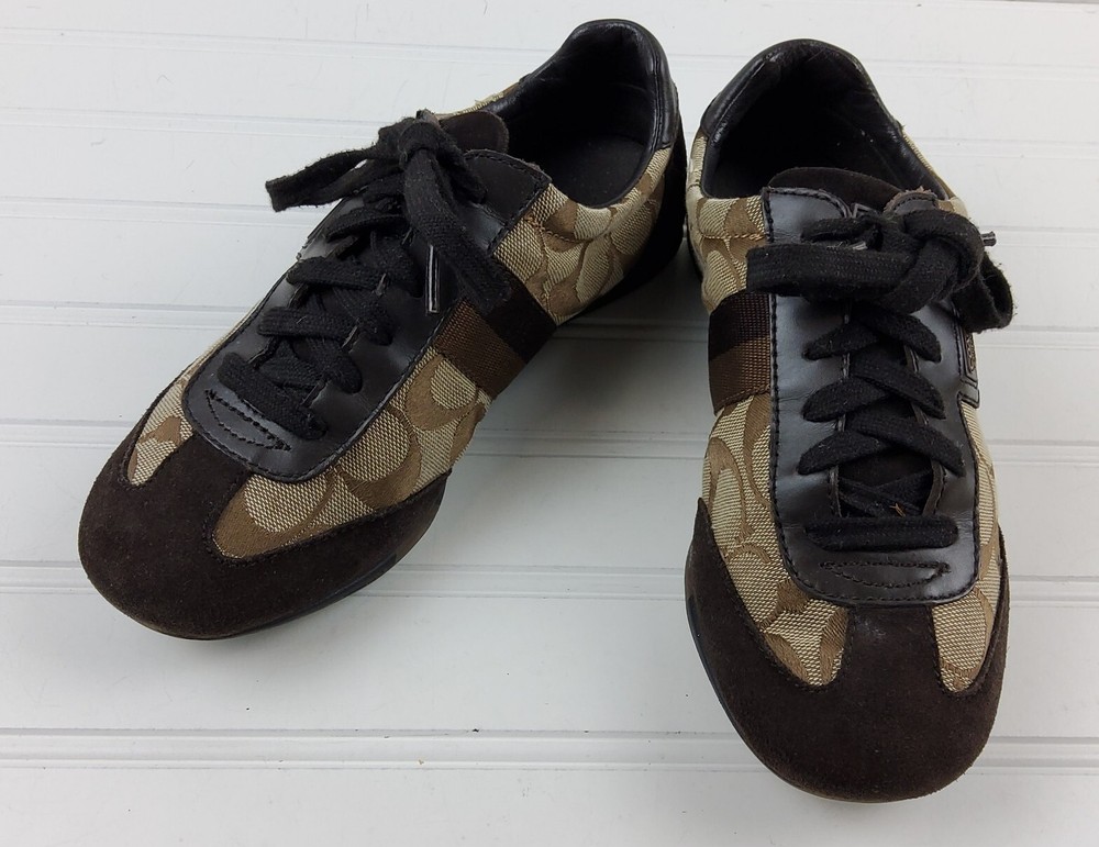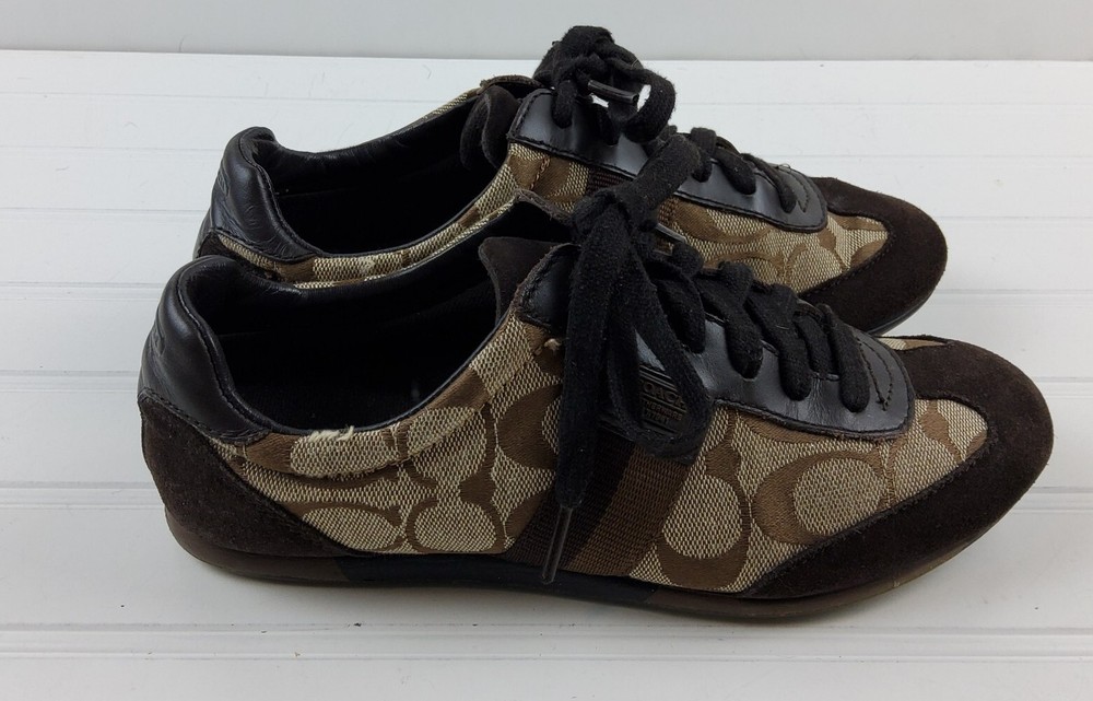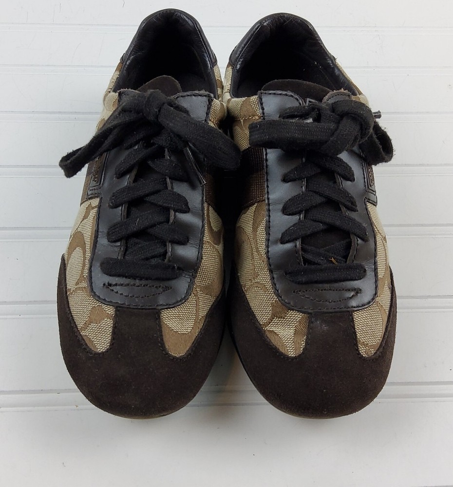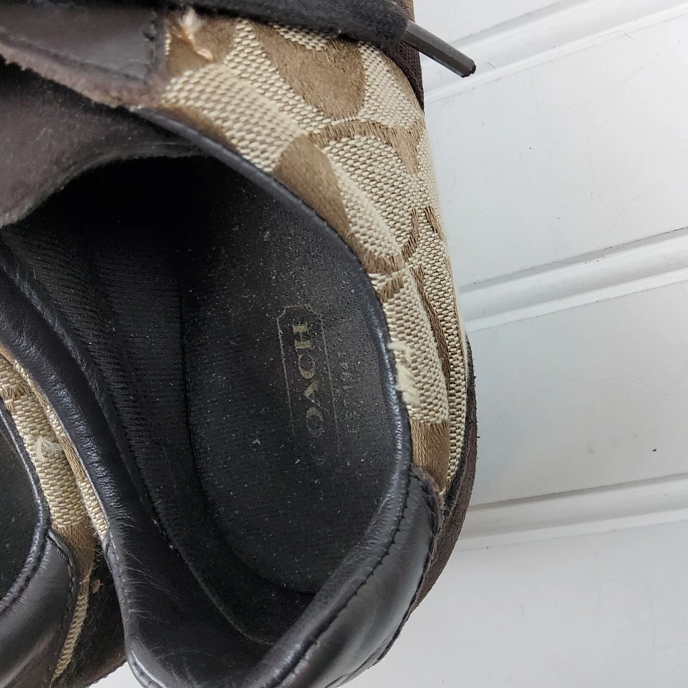 Coach Signature Joss Brown Suede Lace Up Low Top Sneakers Size US 6M. Pre-owned condition. There is general wear on the insoles and bottoms. Please see photos for detailed condition.