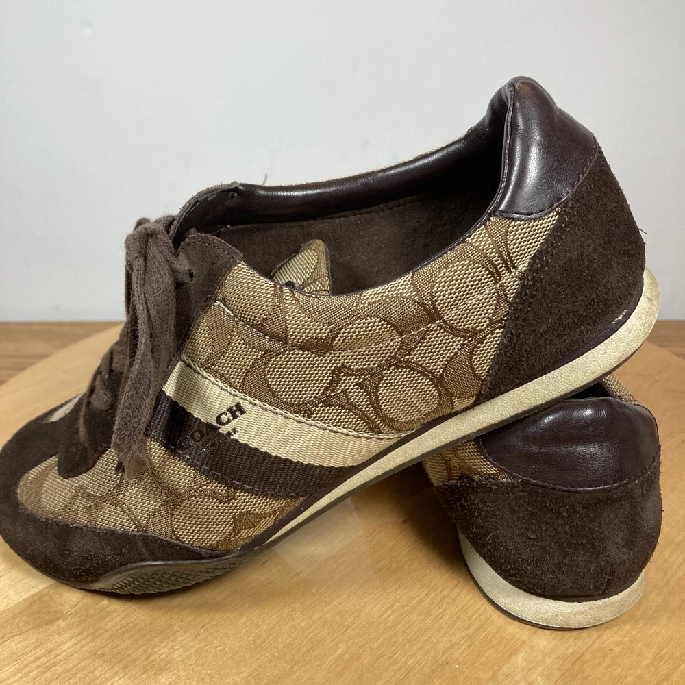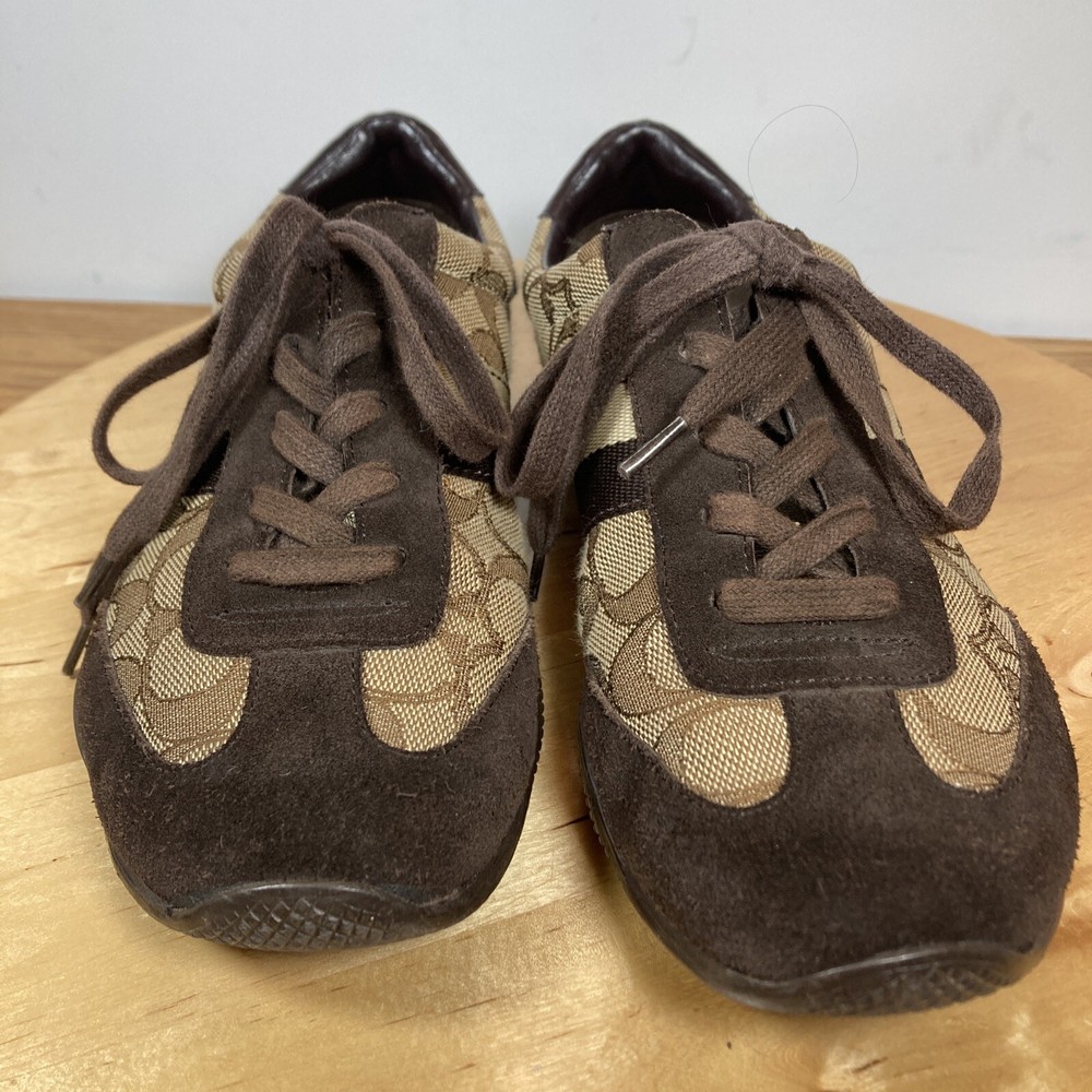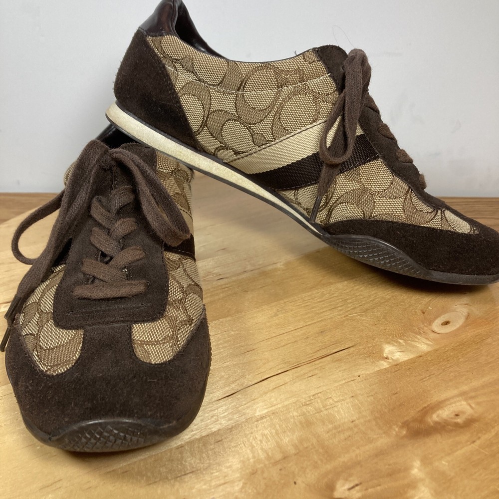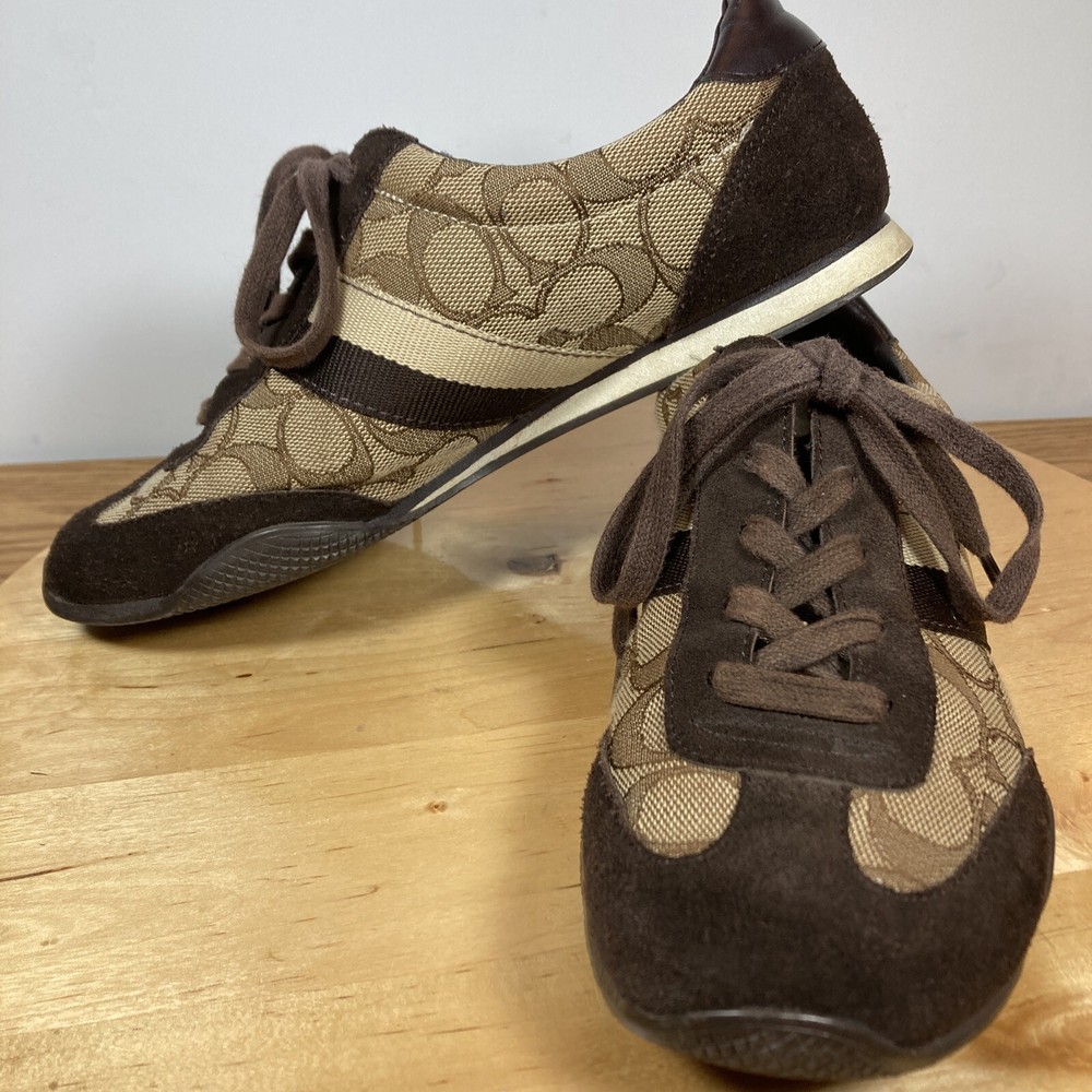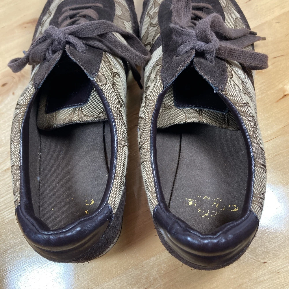 Coach Womens 7 Joss Brown Lace Up Casual Sneakers Shoes. Noted ware to soles of shoes, otherwise in very good condition! Please review all photos!