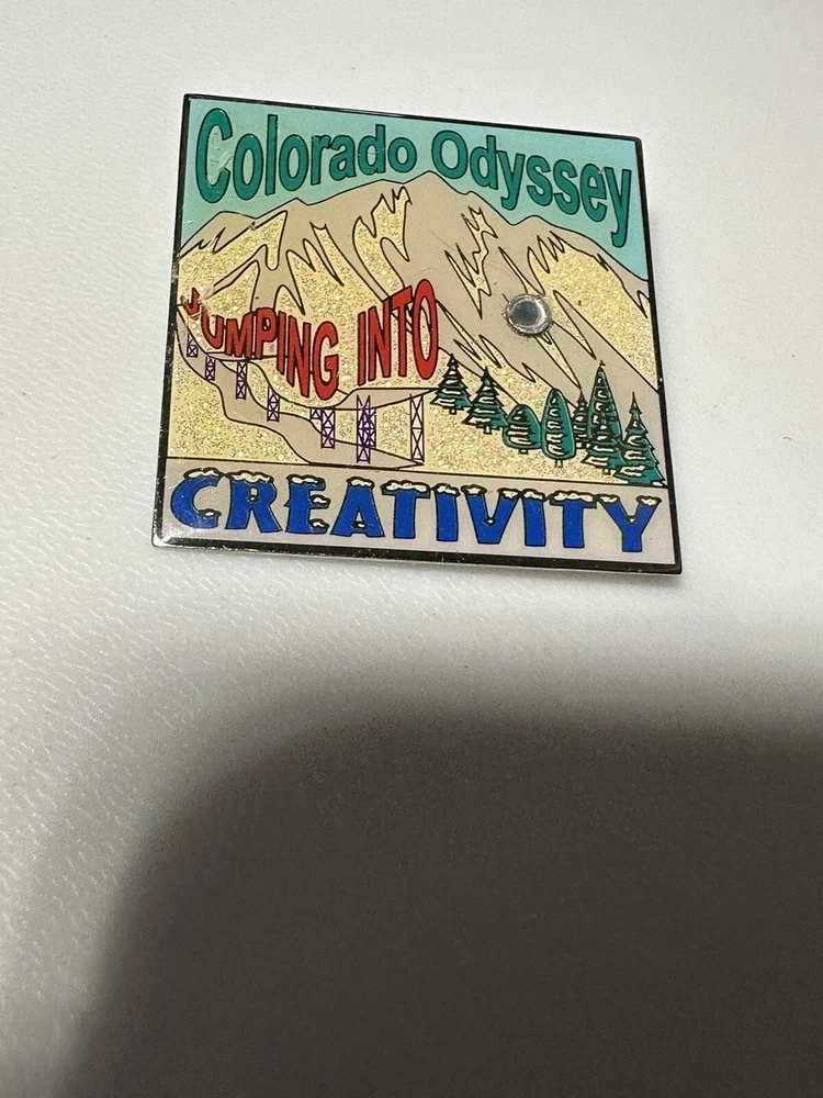 This vintage Colorado Mountains Creativity Odyssey pin is such a cool find! The wear and scratches give it character, and the unique metal piece adds mystery—maybe it once held a charm? Perfect for collectors or OM alumni who love nostalgic memorabilia. The details in the design are still sharp, and it’s exactly as pictured. A fun little piece of history!