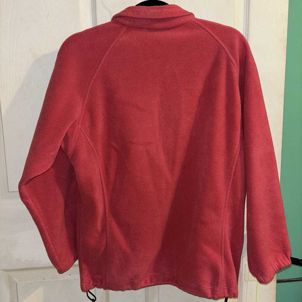 This Columbia jacketa is a must-have for anyone who loves outdoor activities and wants to stay warm while doing them. Made of polyester fleece, this mid-length jacket has a classic fit and a full zip closure. The orange coral color adds a pop of color to any outfit, and the elastic waist and pockets make it easy to wear and carry your essentials. It's perfect for travel and casual occasions, and the jacket is machine washable for easy care. The jacket is available in size L and is women’s, making it a great gift for someone who loves the outdoors. Whether you're hiking in the mountains or just taking a walk in the park, this Columbia jacket will keep you warm and stylish.