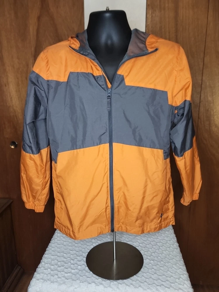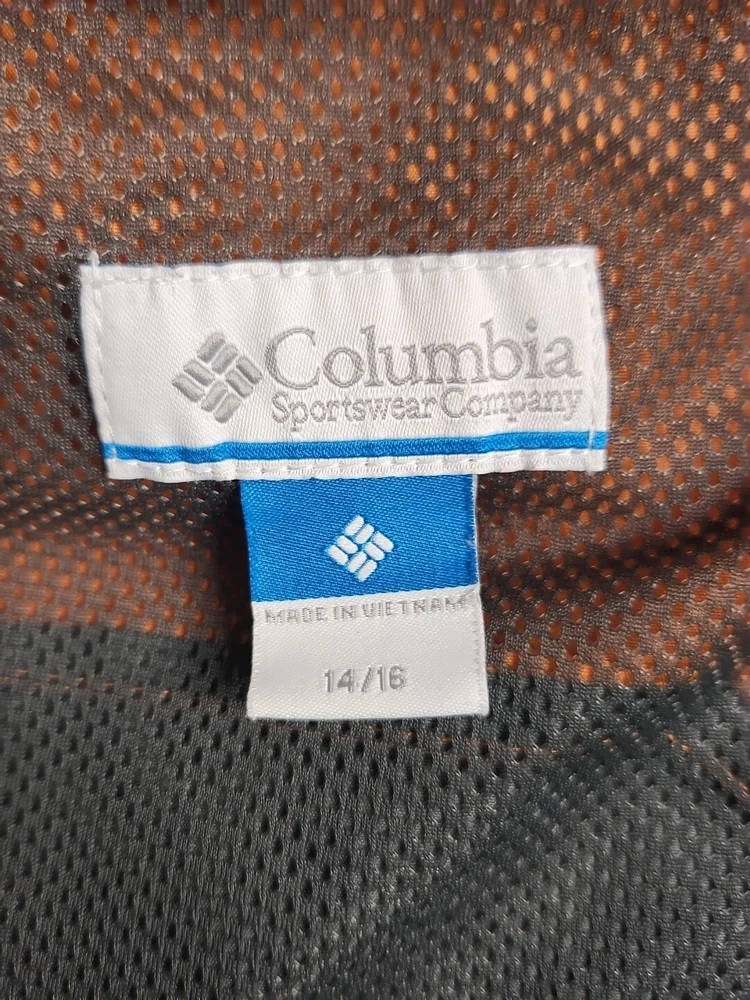 This Columbia windbreaker jacket is perfect for any outdoor activity in fall, winter, or spring. The softshell fabric type and mid-length jacket/coat length make it comfortable to wear for casual events or walking activities. The jacket features a hood, zip closure, and colorblock pattern with the Columbia logo and zipper accents. The jacket is unisex and comes in size 14/16, with a regular fit and long sleeves. The outer shell material is nylon and the lining material is also nylon. The insulation material is polyester, making it warm and cozy during cold weather. This Columbia Omni-Tech product line is perfect for any kid who loves outdoor activities and wants to stay comfortable while doing so. Length is 25 inches. Pit to pit is 22 inches.