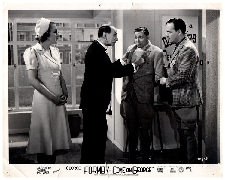 Come On George Original Lobby Card 1939 George Formby Pat Kirkwood Joss Ambler Meriel Forbes VG Condition Silver Screen Mementos are pleased to be able to offer this authentic original Lobby Card measuring 8x10 inches. This lobby card is from Great Britain and was printed during the actual year the film was released in movie theaters. The lobby card (also known as Front of House/ FOH card in the UK) was created by the film studios to publicize the movie and was intended for display outside the movie theatre in special glass display boxes. These are NOT reproductions! You are looking at a truly original piece of cinema art, a genuine collector's item. We have a huge archive of over 250,000 original lobby cards, mostly from the 1930's to the 1980's. We will be releasing many more rare gems from our vast collection, which will include lobby cards, original photographs, movie stills, magazines, brochures negatives, transparencies, slides and other collectible items of movie memorabilia. Powered by SixBit's eCommerce Solution
