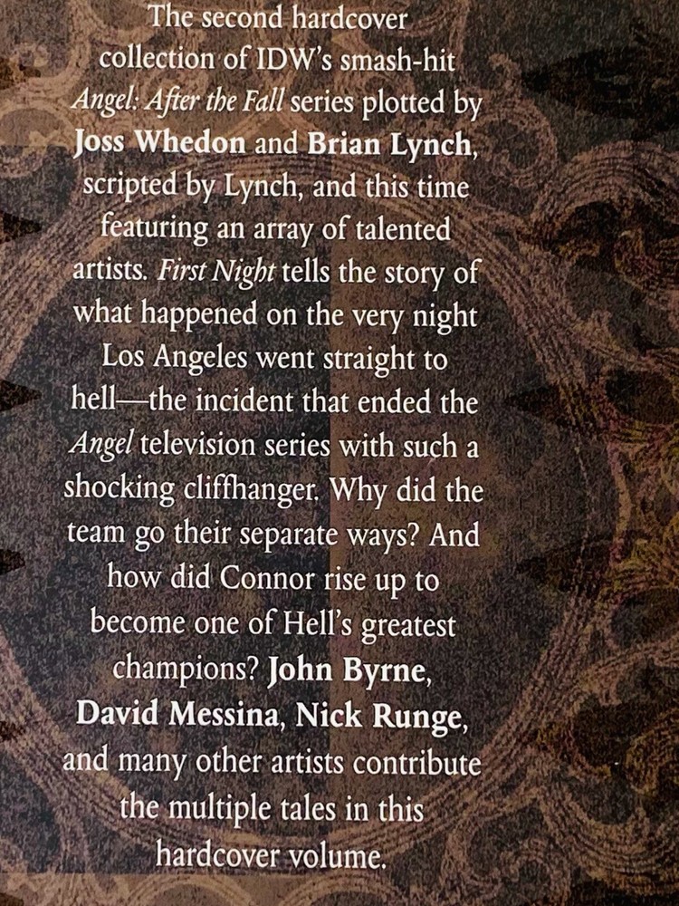 ANGEL After The Fall First Night Vol 2 2008 Joss Whedon Hardcover Graphic Novel. Please see the pictures of exactly what you will be purchasing. There is some scratches, discoloration, corner wear on the outside of the book and Slight discoloration. This item Comes from a smoke free home. It will be shipped QUICKLY in a clear plastic bag then placed in a eBay Polybag, box, or large envelope for the safest and most economical shipping cost.