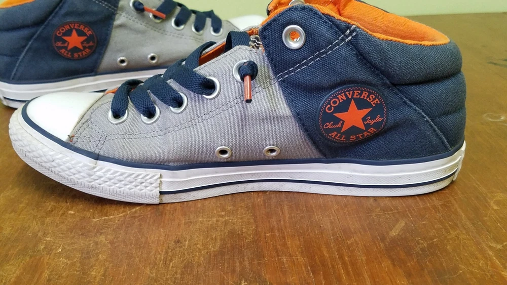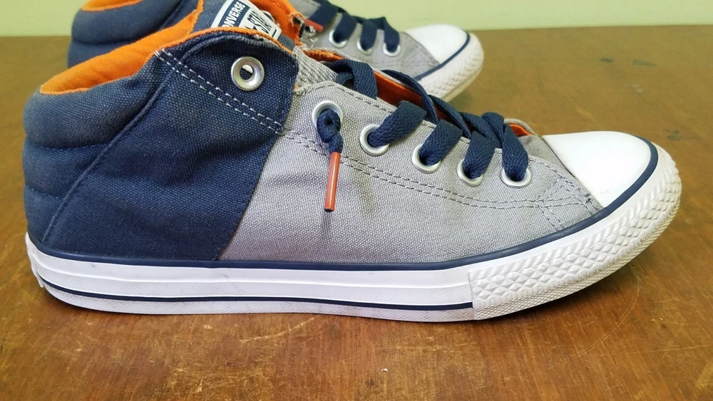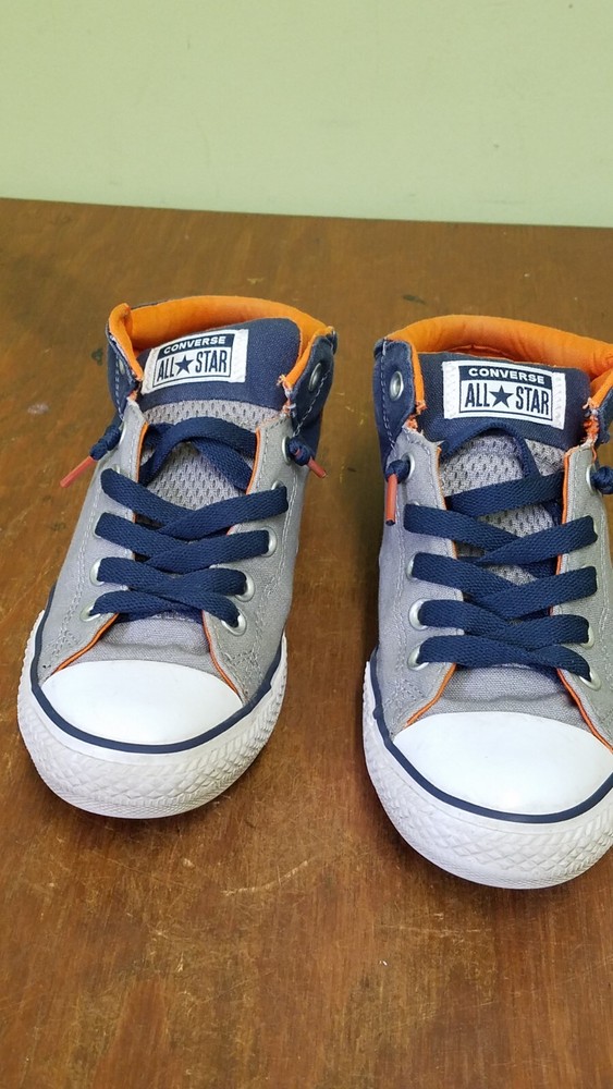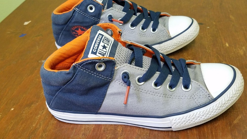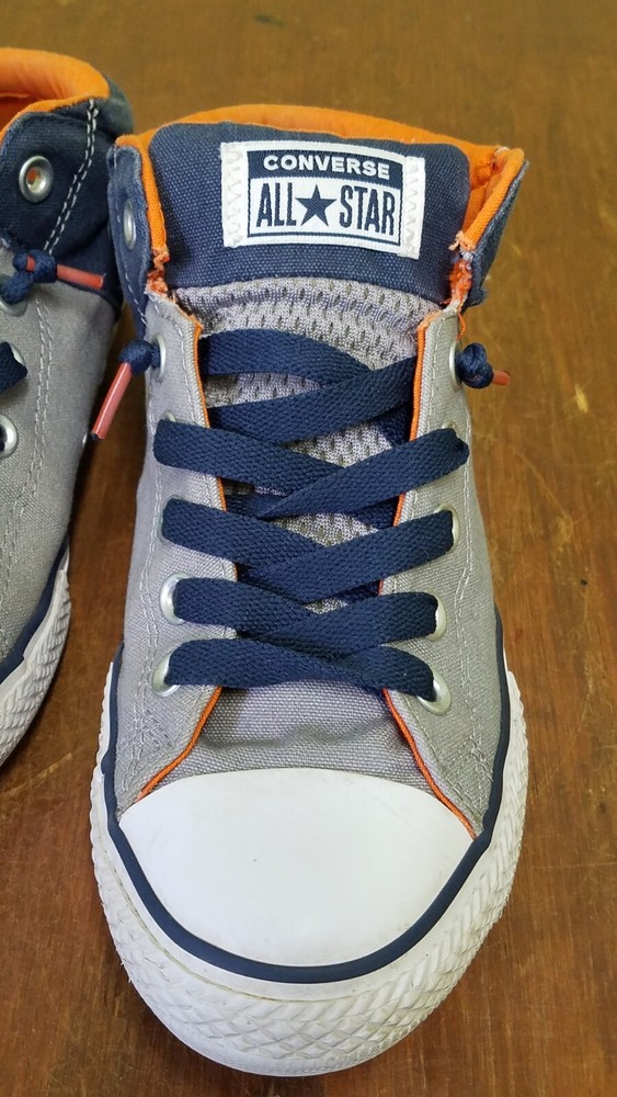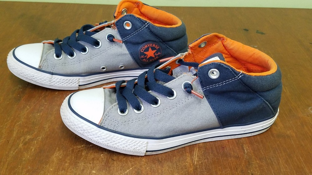Converse All Star Axel Mid Navy Gray Orange Sneaker Youth Size 5. Gently used with lots of life left. Does not come with original box. Shoes come from a smoke and pet free home. Please see pictures for condition.