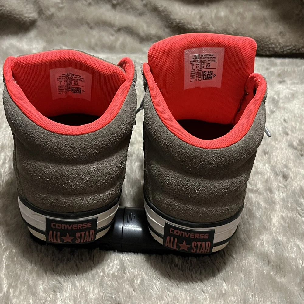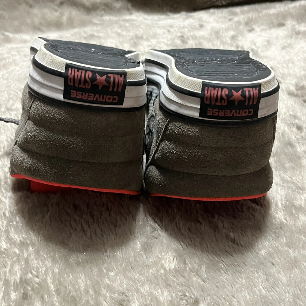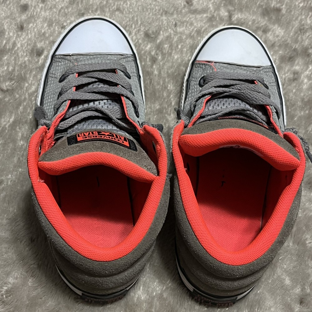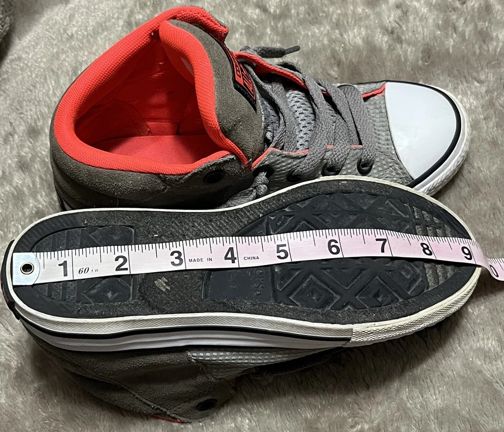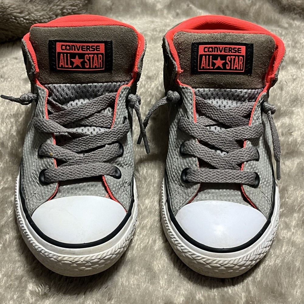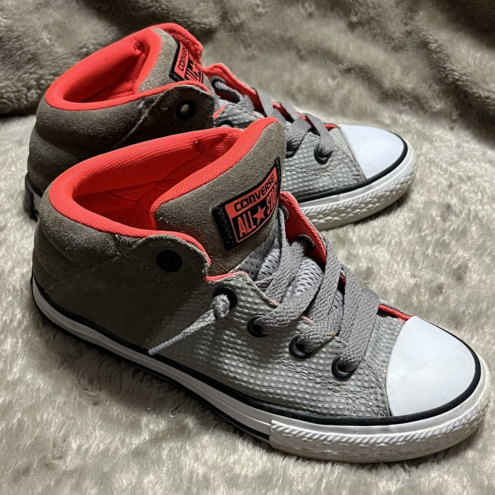 Converse Chuck Taylor All Star Axel Mid Sneakers Gray Orange Unisex Junior Sz 2 EUC Shoes are pre owned in excellent condition Please see listing photos to evidence item condition Elevate your little one's style with these Converse Chuck Taylor All Star Axel Mid Sneakers. The sneakers come in a unique gray and orange color combination that is perfect for any casual or athletic outfit. They feature a round toe shape and a mid-top shoe shaft style, with a flat heel height that makes them comfortable for walking, school, basketball, and sports. These sneakers are perfect for unisex kids who love colorful and trendy footwear. They are made of high-quality textile material and have a standard shoe width that fits most children's feet. Get your hands on these stylish sneakers and let your child make a fashion statement.