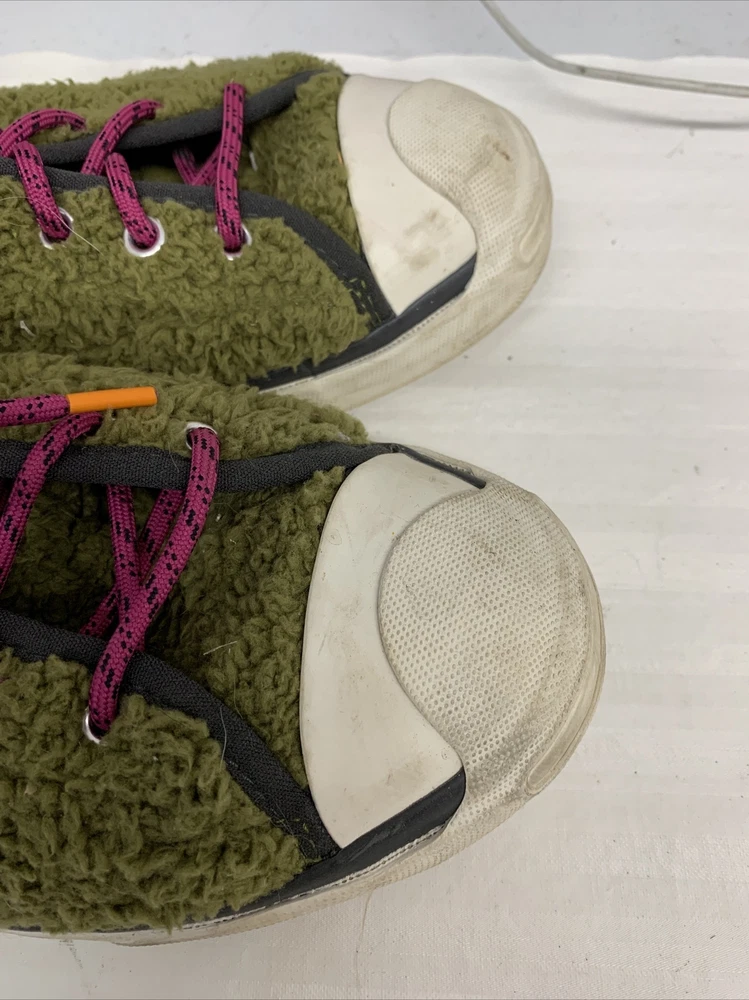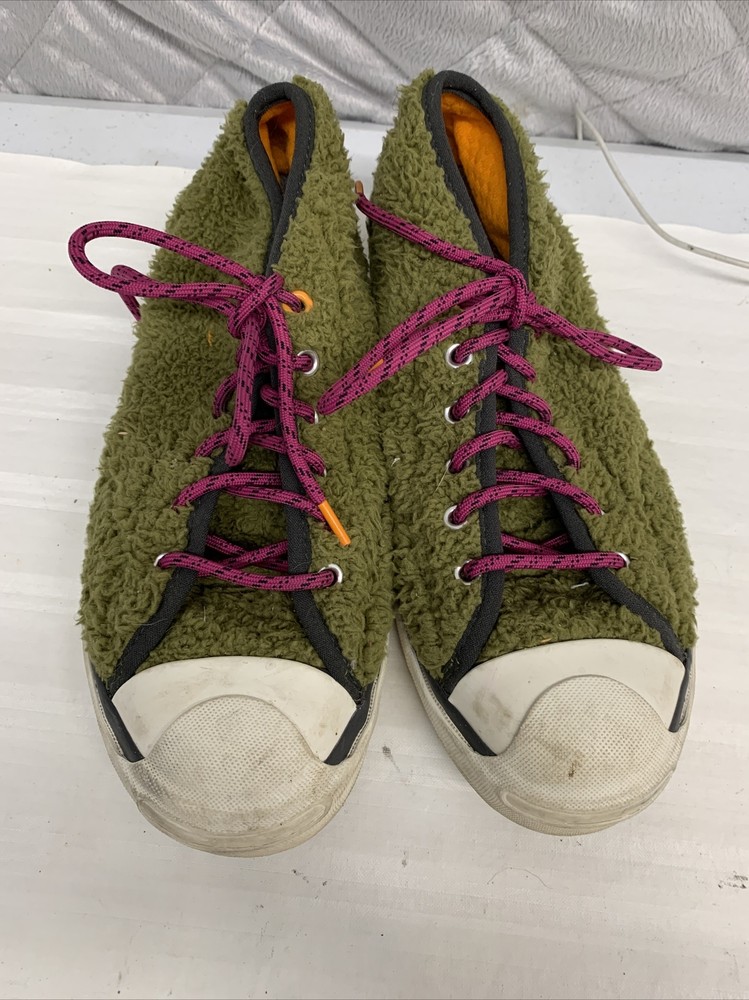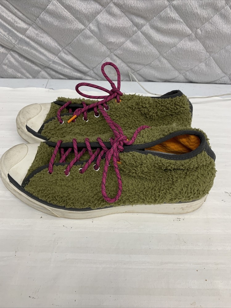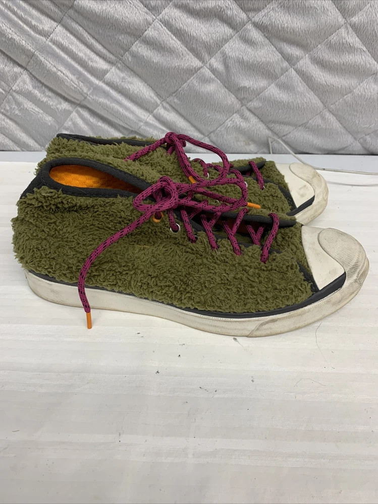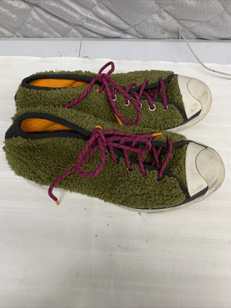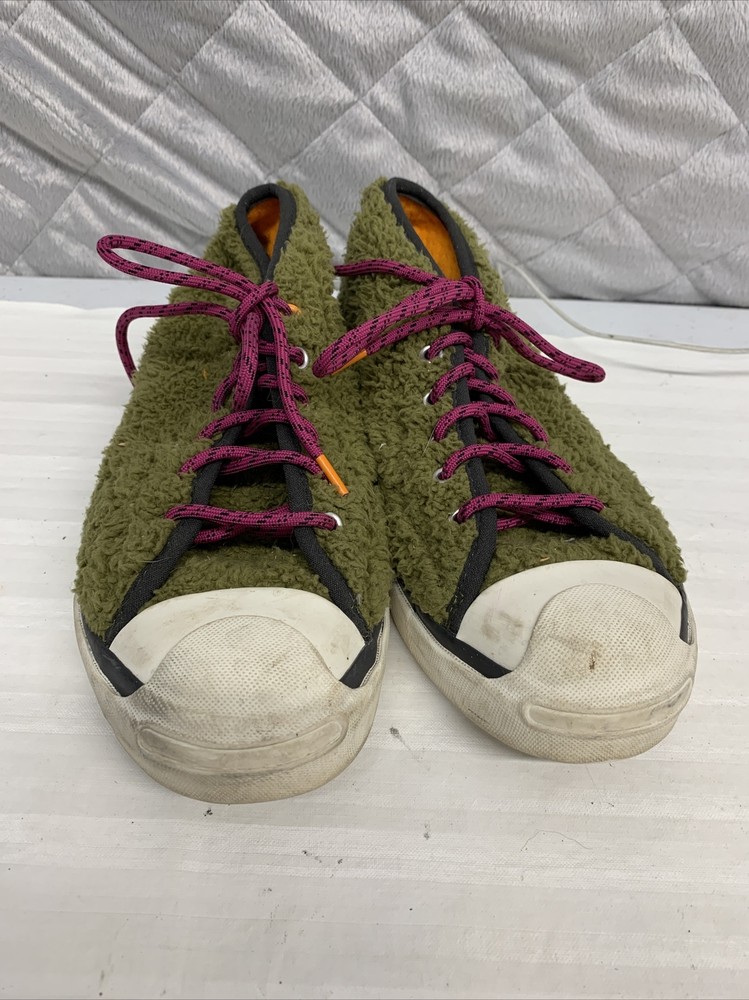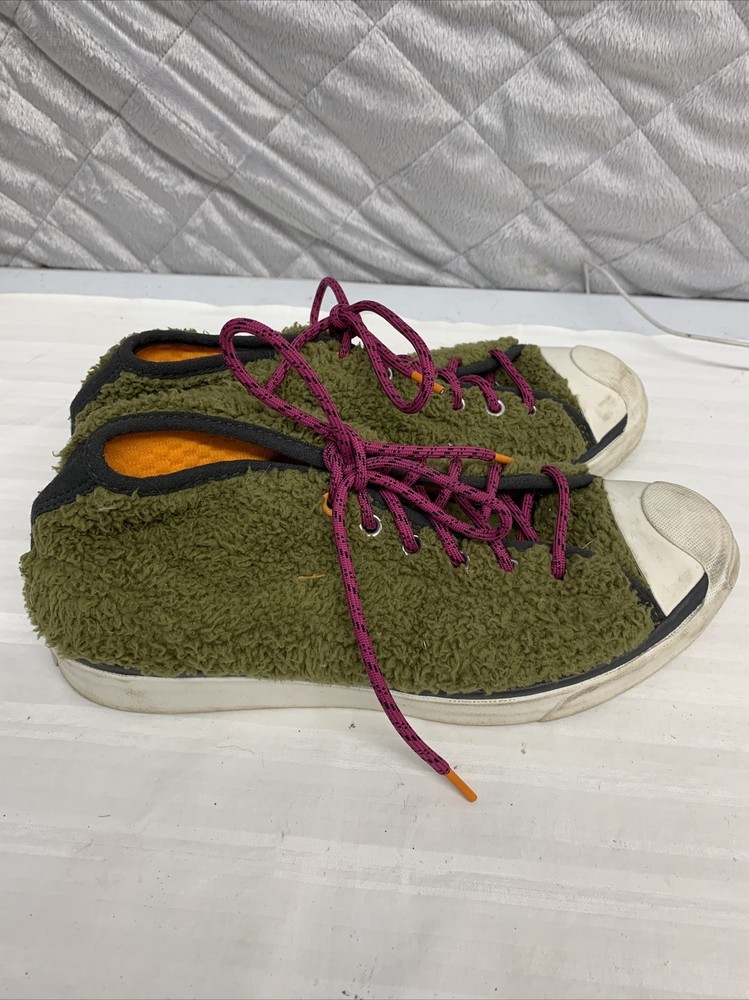 Unisex Men’s Size 6.5 Women Size 8 Converse Jack Purcell JP Pro Mid Dark Moss Shoes purple laces orange inside In good condition