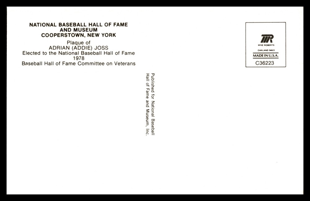 | Manufacturer | Cooperstown Hall of Fame Postcard |