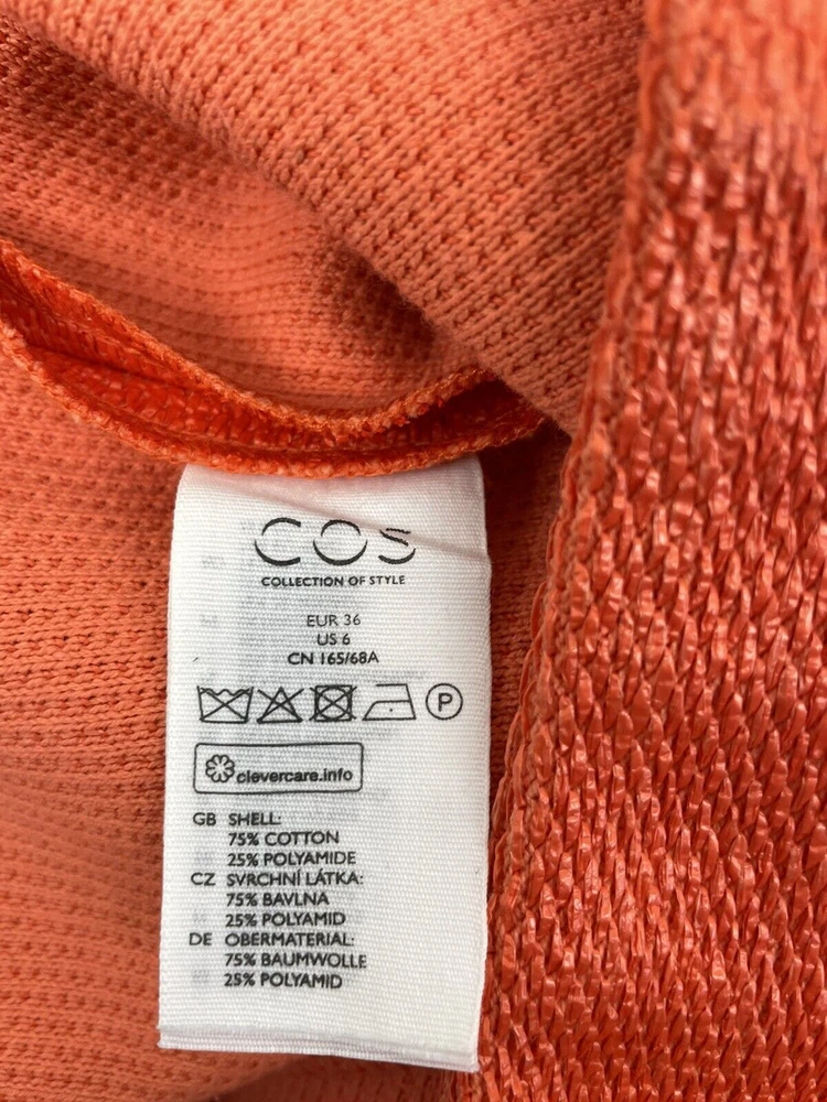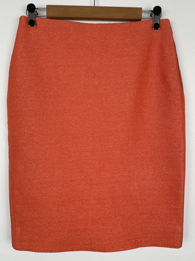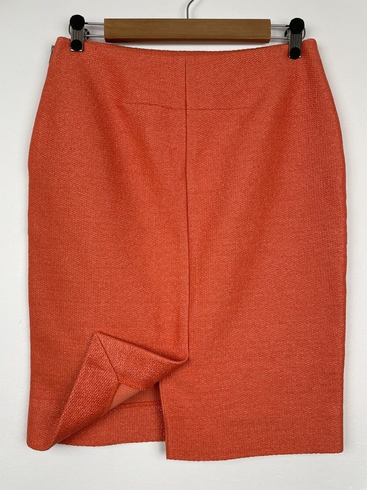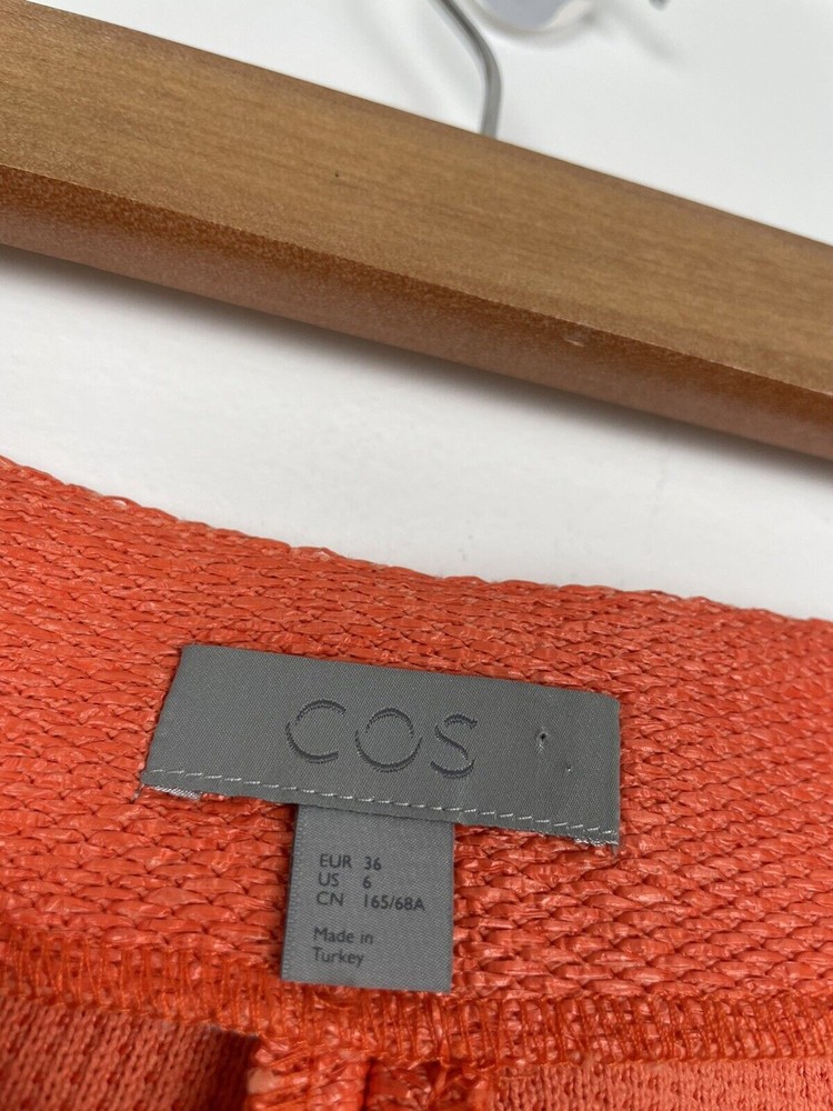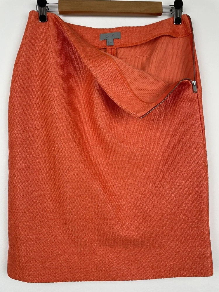 Cos Orange Woven Raffia Hessian Skirt Size UK 10 Straight Knee Length Quirky Weave - Unusual Texture Measures (laid flat) across waist: 14" Length: 21" Please see my other listings. Happy to combine shipping.