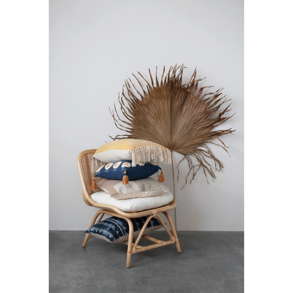 Add depth and personal style to any bed, chaise, or loveseat with a thoughtfully crafted throw pillow; Each plush accent features a variety of prints, embroideries, and textures, carefully curated to enhance any interior design scheme This statement-making throw pillow showcases woven cotton construction with geometric tufted embroidery, finished with decorative tassels Multicolor cotton throw pillow with tufted embroidery and tassels; Tonal cotton encasement on back Express your constantly evolving style with the simple addition of this eye-catching pillow Removable cotton throw pillow cover and insert; in seam zipper closure; Hand wash, do not bleach, medium iron on reverse, do not tumble Pillow measures 16" L x 16" W x 2" H