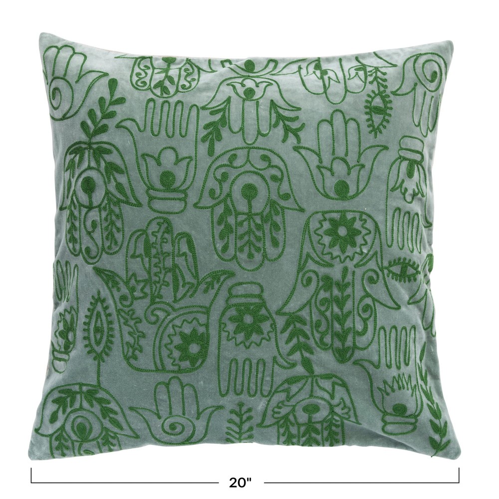 Our thoughtfully curated collection of throw pillows showcases a wide array of lush woven textures, prints, embroidery, and silhouettes to create the picture perfect nook. Explore a variety of plush accents to transform a house into a home including throw pillows, lumbar pillows, bolster pillows, down and polyfill inserts, and so much more. Choose from a vast array of materials from supple velvet and handwoven cotton to embroidered wool and textural boucle, and styles from mid-century modern and classic farmhouse to contemporary boho and vintage glam. Add a dash of relaxation and sophistication to a lounge space or bedroom to curate a warm and welcoming ambiance that is guaranteed to impress. This global throw pillow features supple cotton velvet adorned with intricate hamsa hand embroidery Includes polyfill insert Machine Wash Warm, Gentle Cycle, Do Not Bleach, Tumble Dry Low, Warm Iron If Needed or Hand Wash Made from cotton and polyester 20 inches L x 20 inches W x 2 inches H